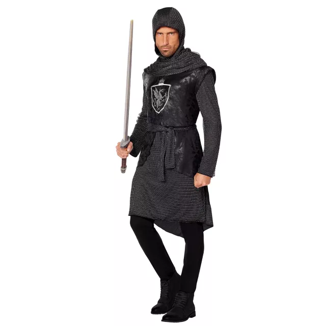 Hear ye, hear ye! Prove your honor and loyalty to the king this Halloween when you defend the castle dressed up in this Noble Knight Costume. Featuring a black tunic, hood and belt, this awesome medieval style costume will have you looking just like a brave knight from the medieval era and will have you looking great at any costume party.