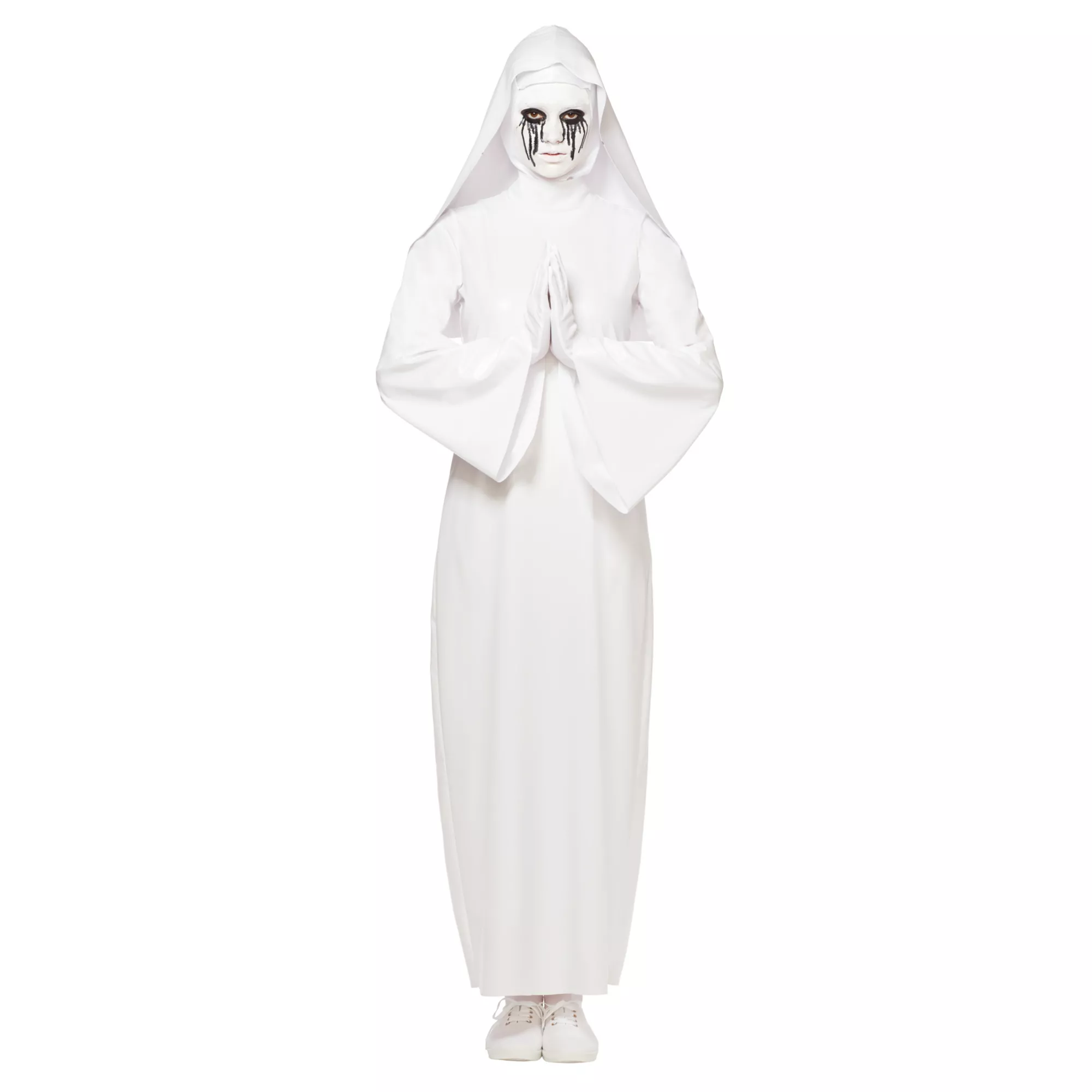 Scare all of your friends with this American Horror Story nun costume. Represent the poster of the hit series American Horror Story: Asylum when you dress in this white robe and head dress. Add some black makeup (sold separately) and you'll be the scariest nun out there this Halloween.