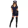 No one will want to run away from you when you're dressed up in this naughty officer costume! This cop dress is blue with officer patches and features a nameplate that with the name "Pat U Down." Whether you're crashing the party or getting it started, this costume is sure to be great for any fun party.