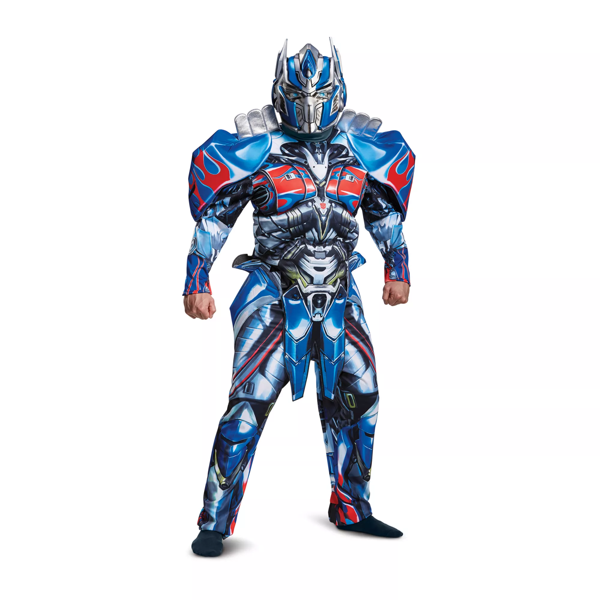 Get ready to lead the Autobots and save Earth when you suit up in the deluxe Optimus Prime costume! This padded jumpsuit features Optimus Prime's signature high-tech style with a lightweight design, and the attached shoulder pieces and included helmet complete the robot look perfectly. No matter the occasion, this costume will make sure you're ready to transform and roll out!