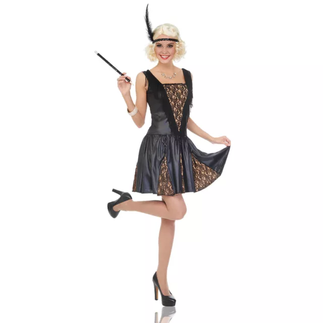 The fabulous parties, the dapper men and hidden booze, what's not to like about being a flapper! The Peek-a-Boo Flapper Adult Women's Costume takes you right into a better time with this classy little dress. Twirl the night away in this silky black dress with lacy inserts and beautiful fringed bodice. Turn heads with the sequin headpiece featuring a fun feather.