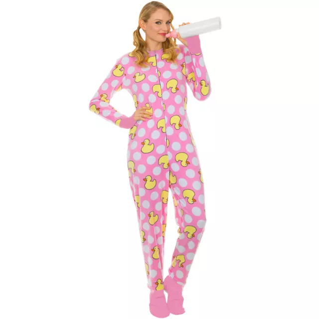 Don't be a baby! Channel your inner child with this hilarious baby themed pajama costume, one you can jazz up with pacifiers and bottles for a Halloween party or simply curl up in and sleep like, well, a baby. That familiar duckie pattern and one piece design will have you feeling just like a kid again! Just don't ask to be changed!