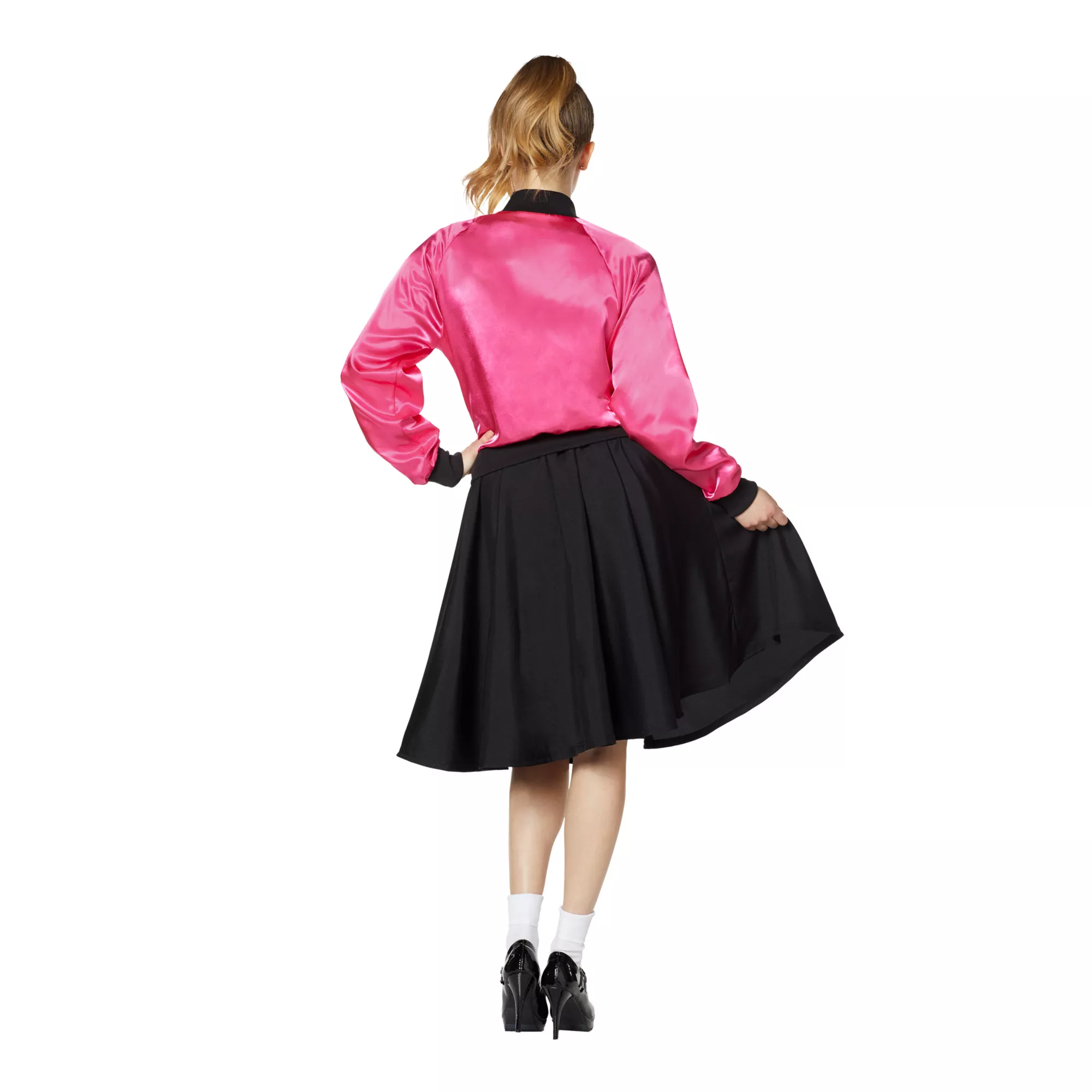 Become a part of the coolest group in town this Halloween! This stylish pink sweeties costume will have you ready to participate in the doo-wop! The bright pink jacket has a treble clef zipper accessory for an added touch of style! The polka dot shirt has a tie detail at the front and the sequin poodle skirt really makes this outfit come alive! Take Halloween back to the '50s in style!