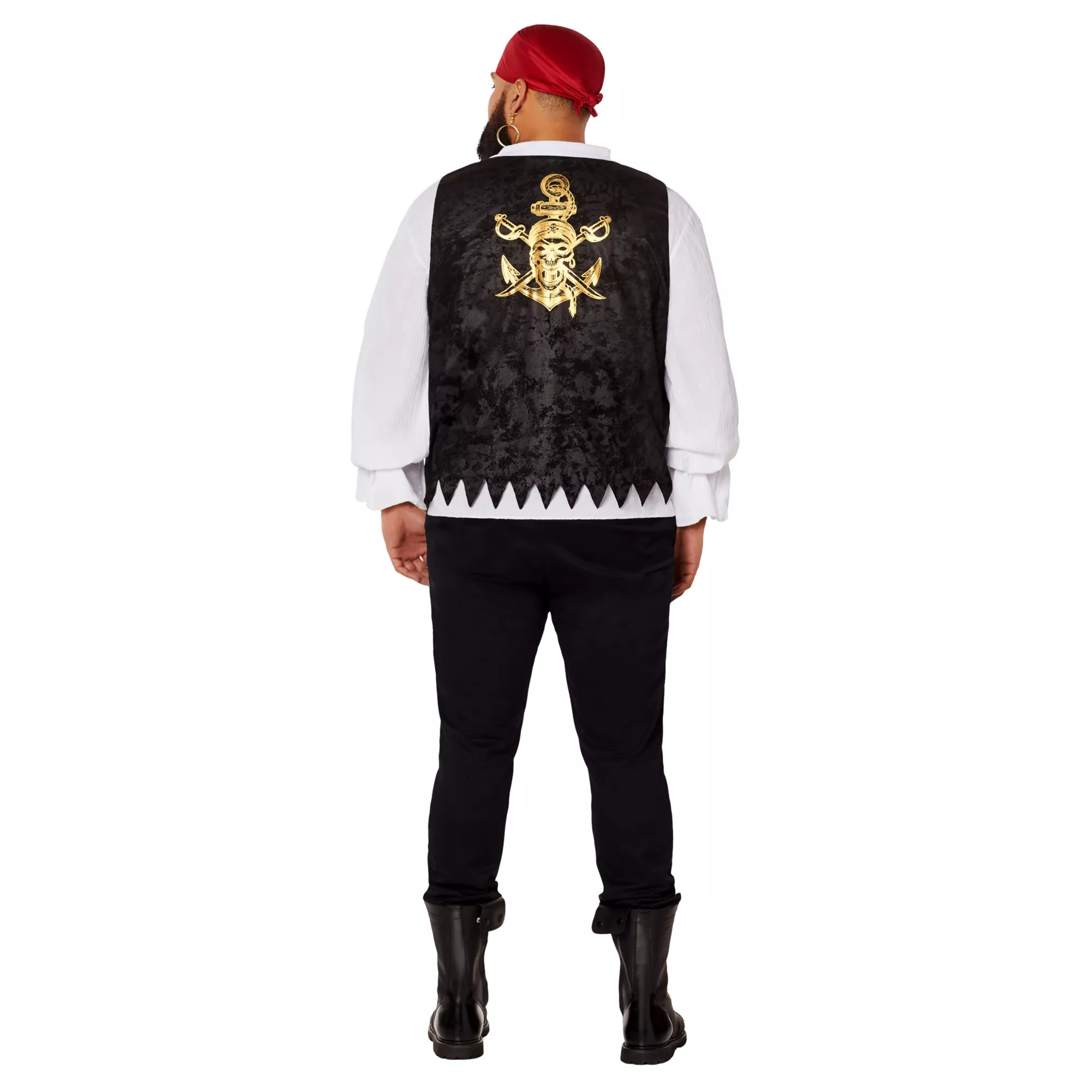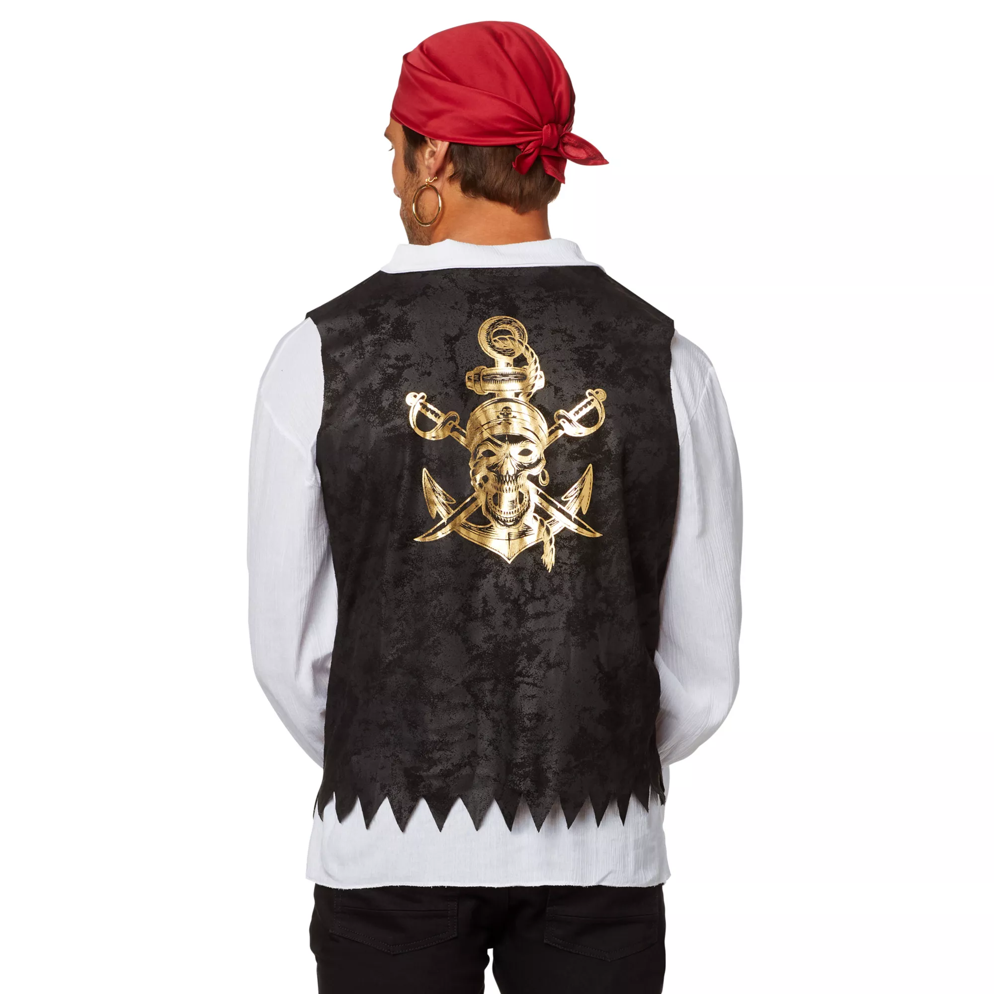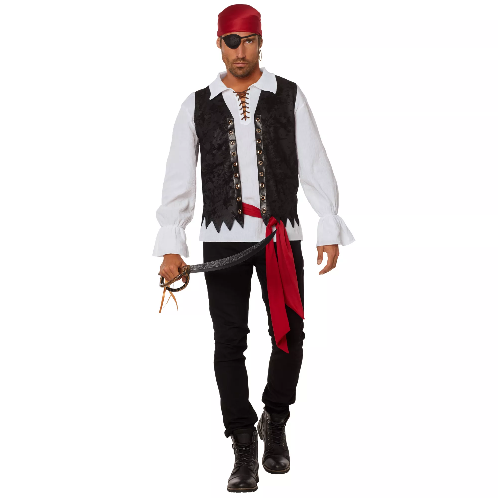 Argh, matey! Get ready for some fun when you dress in this pirate costume kit! Coming complete with a leather-look vest, a red bandana, an eyepatch, and a hoop earring, you’ll be ready to sail the seven seas in no time at all!