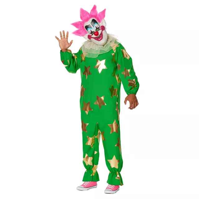 Halloween is the time for clowning around. This officially licensed Adult Plus Size Spikey Jumpsuit Costume is sure to catch eyes and give everyone the heebie-jeebies! We think this costume will be killer!