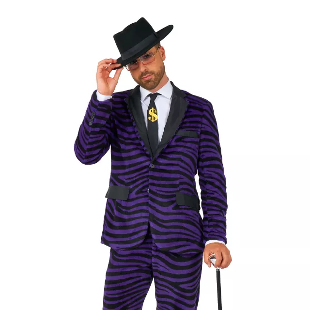 Dress to impress with this eye-catching Purple Pimp Suit. Channel your inner confidence and turn heads wherever you go with it's furry material.