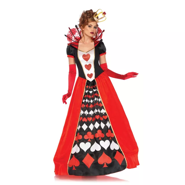 Take a trip through Wonderland this Halloween when you step into this gorgeous Adult Queen Of Hearts Costume. Everyone at your halloween party will go completeley mad when you walk in looking like royalty!