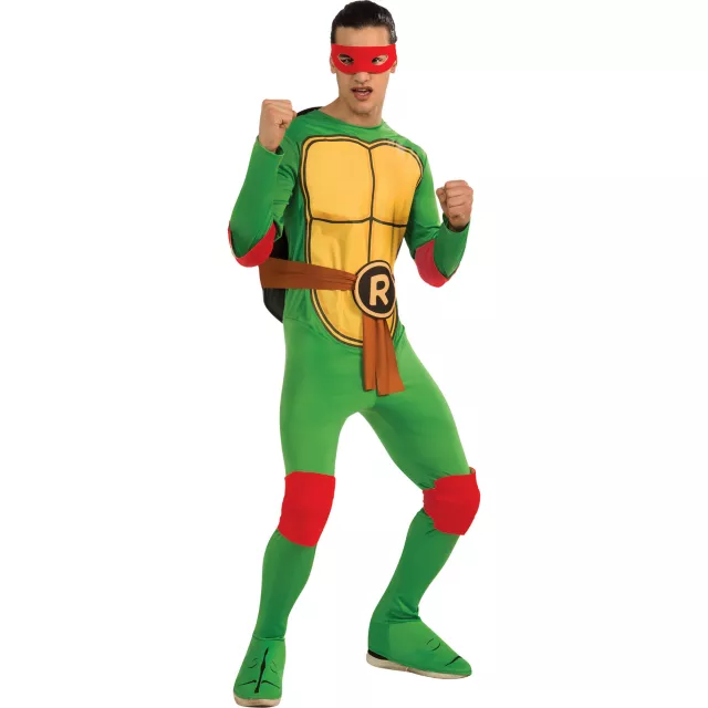 Hide in the gutters of your neighborhood preparing attacks on the bad guys this Halloween wearing the officially licensed Teenage Mutant Ninja Turtles Raphael Adult Men's Costume! Character jumpsuit comes with turtle shell backpack and red face mask.