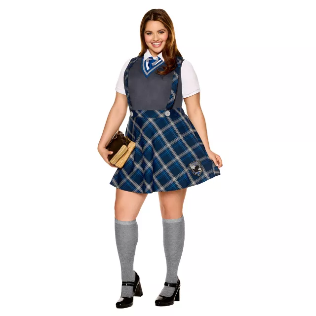 Welcome to Ravenclaw! This officially licensed Harry Potter Dress Costume includes a dress with an attached undershirt, vest, and suspenders, each adorned with Ravenclaw's traditional colors. A striped tie pulls the look together. If you're witty and creative, this adult Ravenclaw Dress Costume could be just the right fit for you!