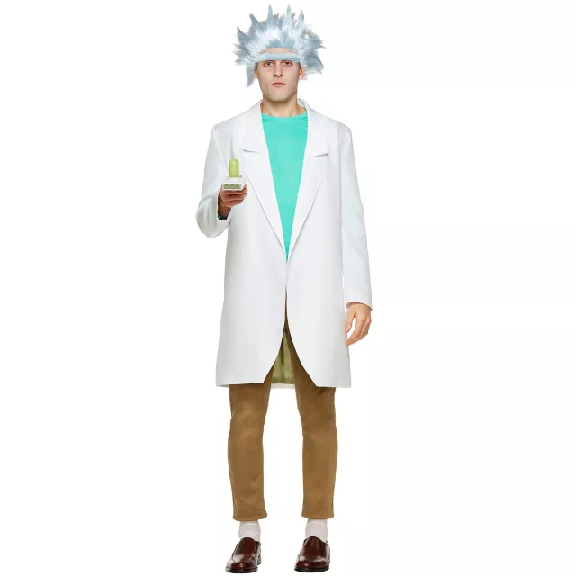 Whether you're traveling through the galaxy or partying with your glip glops, this Rick costume will have you prepared for any adventure you can think of. This totally awesome costume features his signature lab coat, and also includes his wig and unibrow, transforming you into Rick faster than you can say "WUBBA LUBBA DUB DUB!"