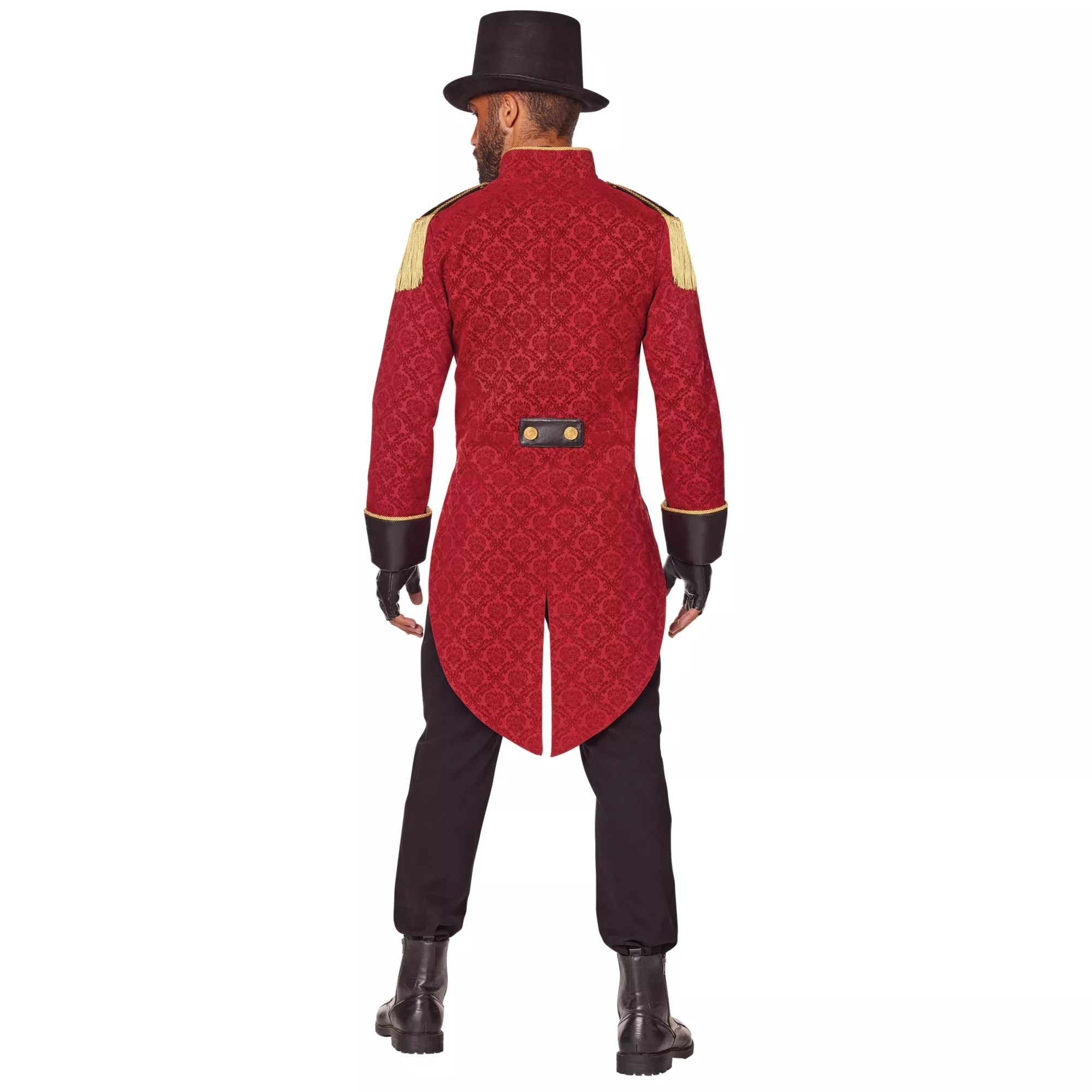 Come one, come all! Step right up and get yourself this dazzling Adult Ringmaster Jacket. You'll steal the show this Halloween wearing this maroon jacket with gold tassel shoulders, coattails, and chain closure.