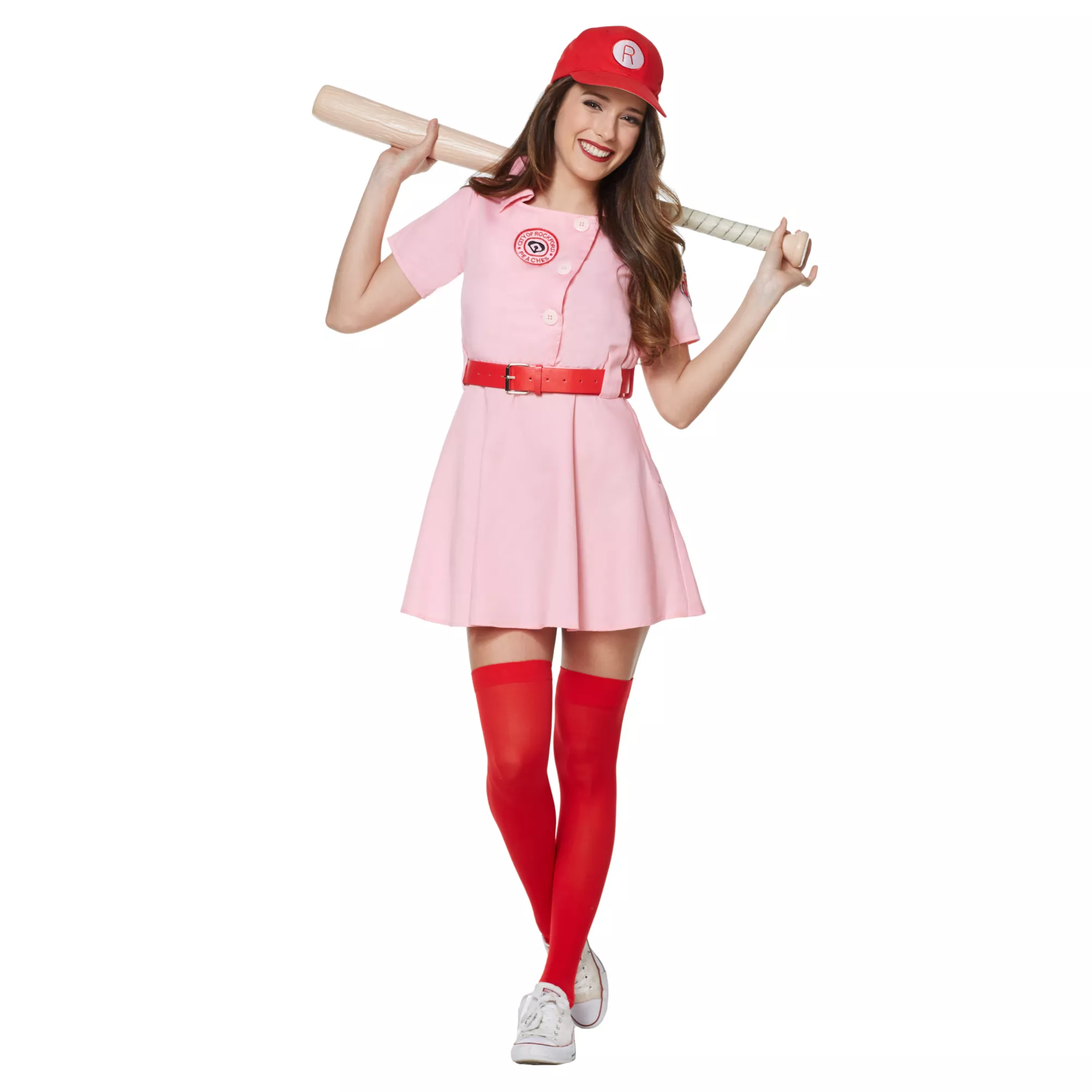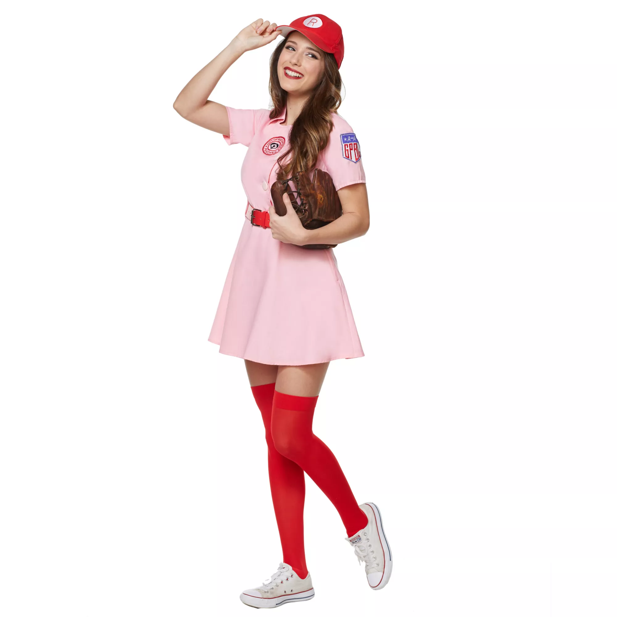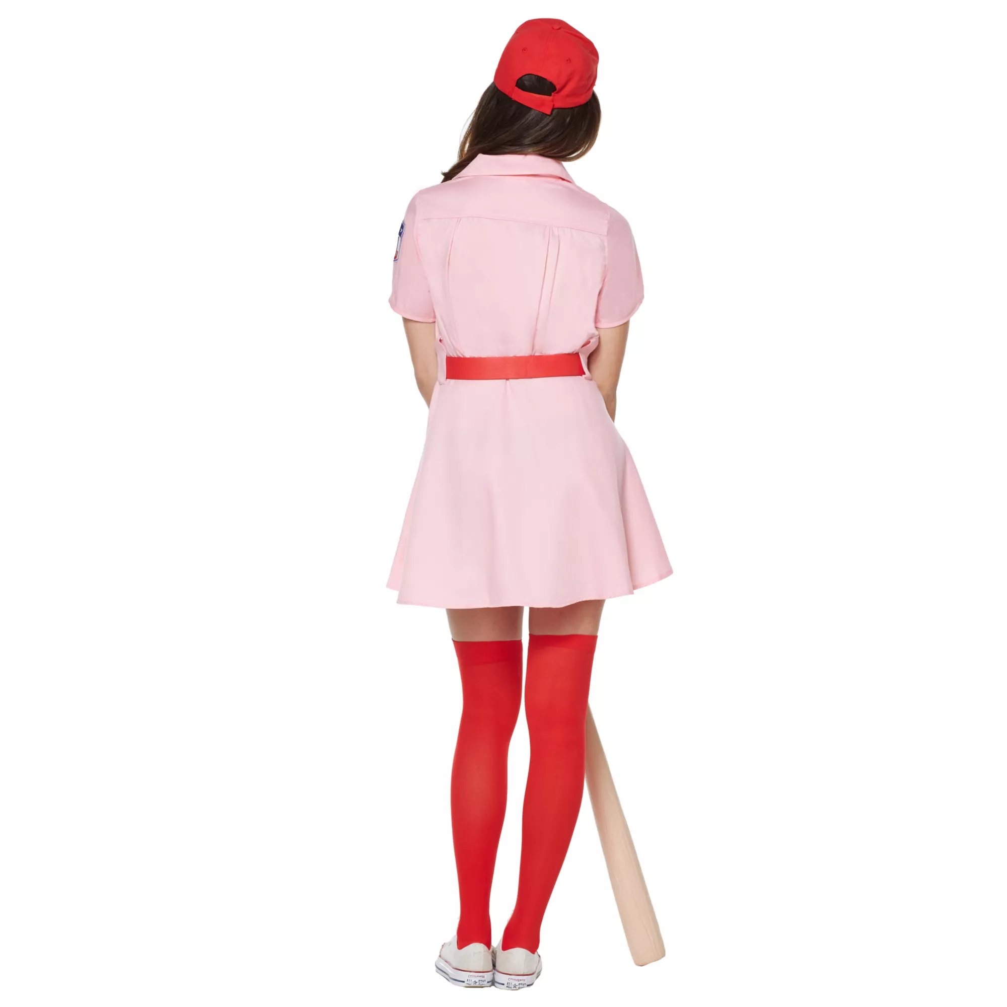 You'll be in a league of your own when you wear the officially licensed Rockford Peaches costume. Hit one out of the park with this pink, uniform-inspired dress, complete with belt and baseball cap. Batter up!