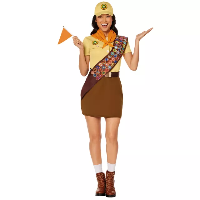 Show off your adventurous spirit with this officially licensed adult Russell the Wilderness Explorer costume! This costume's adorable patch decals and cheerful yellow belted dress and hat are sure to have you repping your favorite Pixar character in style at your next Halloween outing.