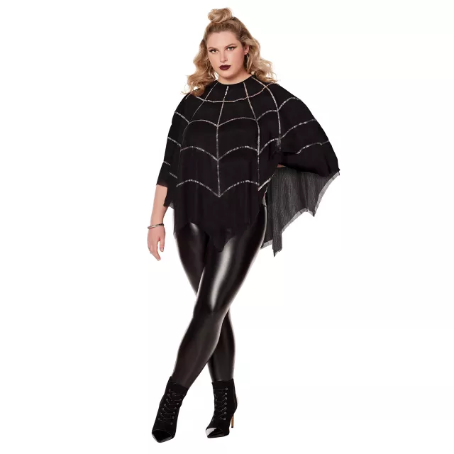 Hoping to find the perfect finishing touch to your Halloween costume? Look no further. This spider web poncho features glimmering sequins and will add a creepy-crawly accent to your look.