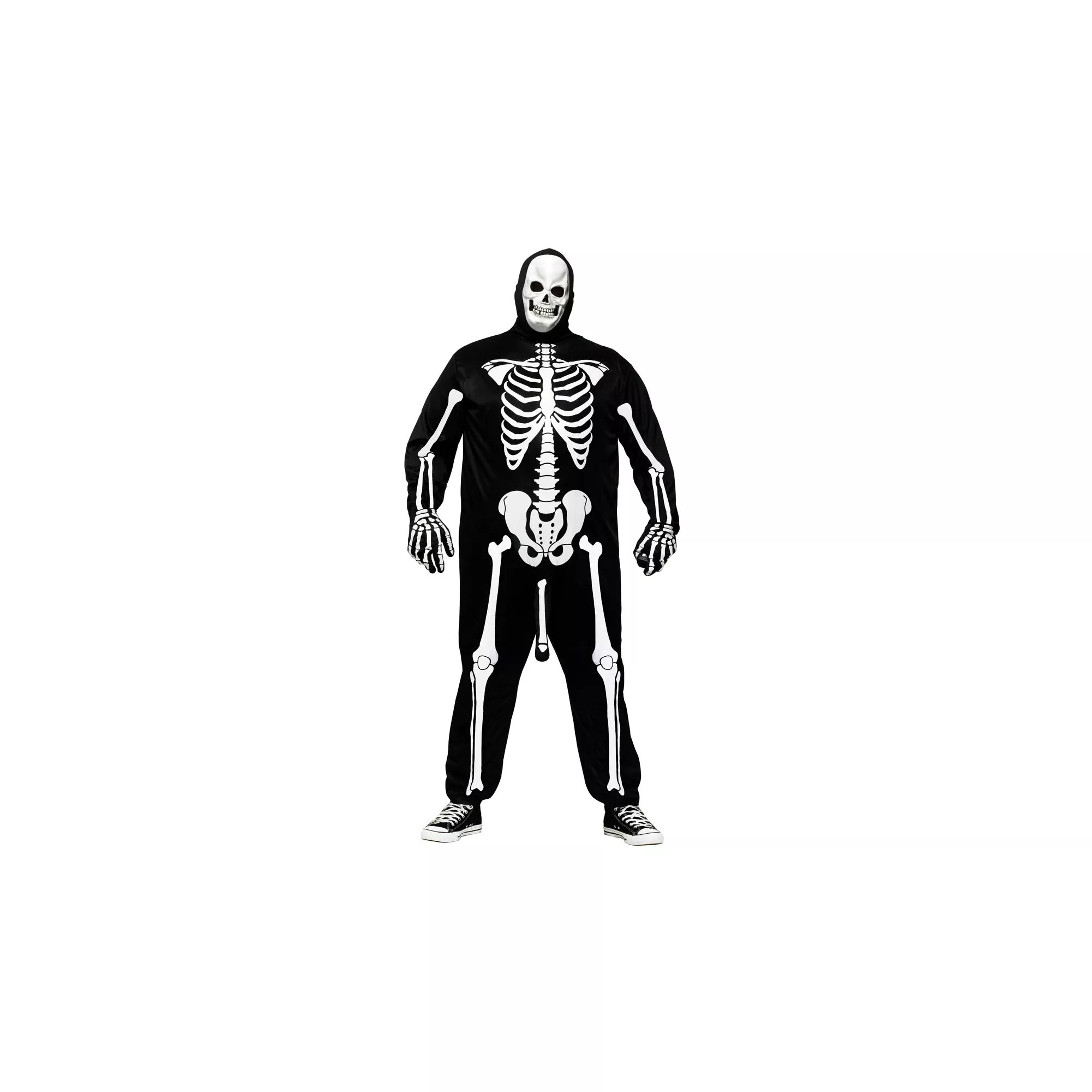 The ladies will be turning their heads to confirm what their eyes just saw when you wear this hilarious Skeleboner adult mens costume. The black and white bone print jumpsuit features a faux phallus and comes complete with a hand-held phallus air pump, gloves and a mask.