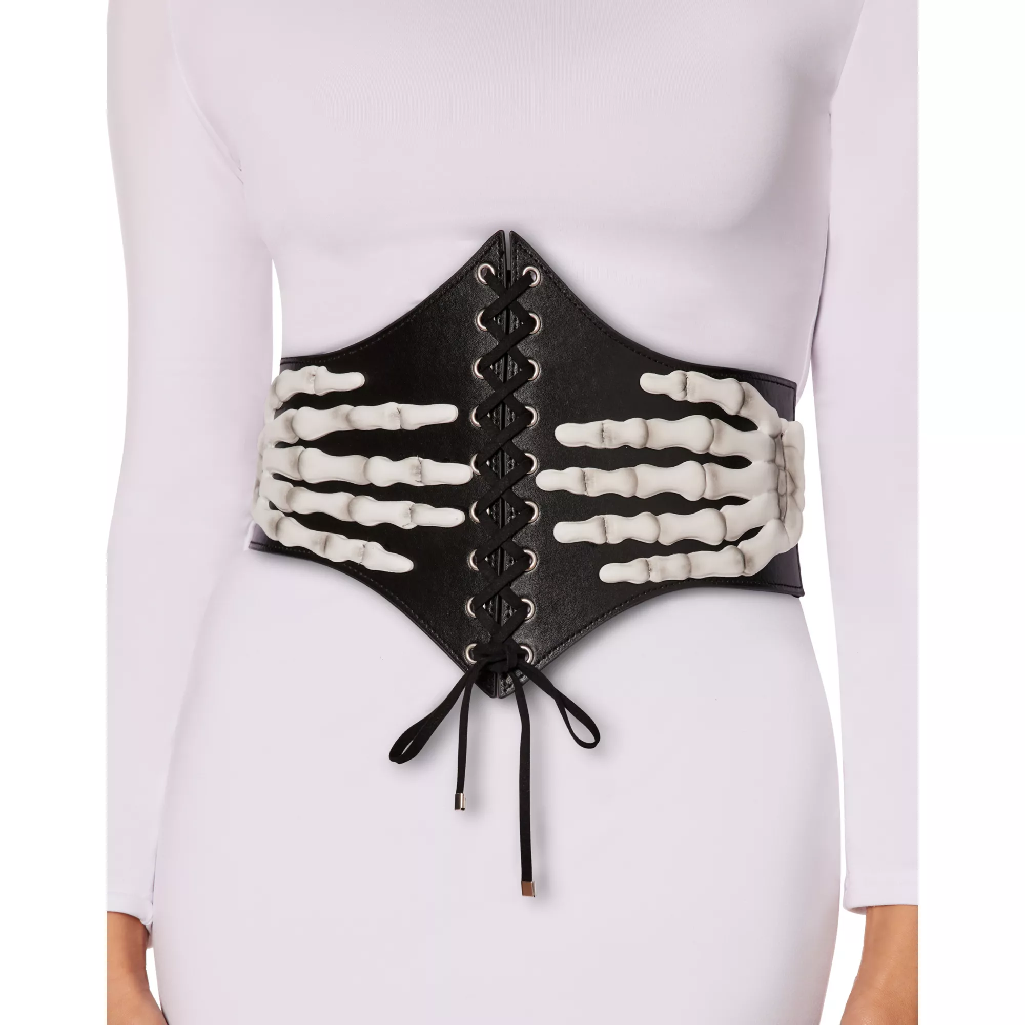 Add the perfect compliment to your scary skeleton costume when you wear this waist cinch! This sinister cinch will definitely level up your look this Halloween.