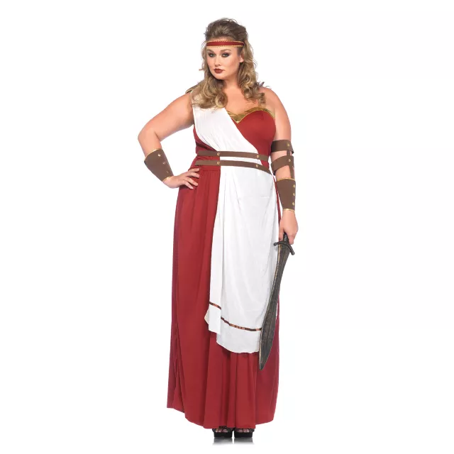 Glow with beauty and lead the most feared military force in this Spartan Goddess Plus Size Women's Costume! This Grecian goddess will stun in this red floor-length dress with golden sweetheart neckline, clear straps to give off the strapless appearance, and an attached white apron that comes over one shoulder and belt to accent your waist. Accent this warrior costume with the fighting armbands and red headband with gold accents. When you are a Spartan Goddess, there won't be a force that you will fear this Halloween!