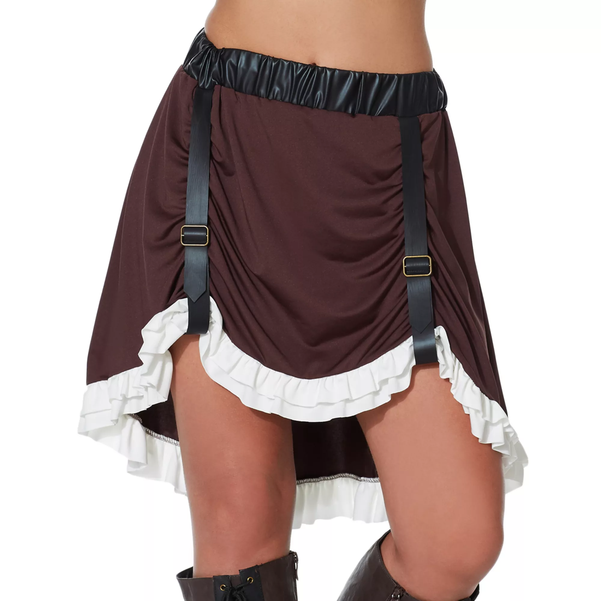 Featuring buckles and straps that run down the sides, this skirt will add a steampunk flare to any costume or outfit!