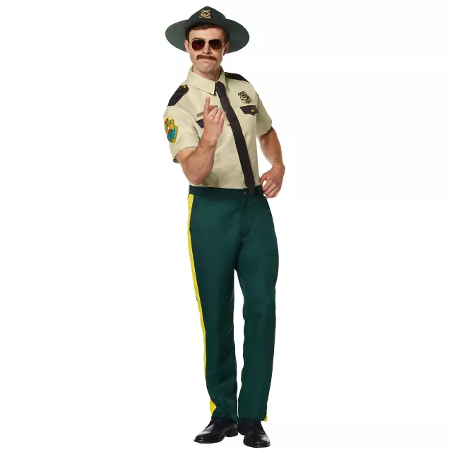 “Hey, Farva!” All the way from Spurbury, Vermont, comes this officially licensed costume from the cult-classic comedy Super Troopers! Grab your syrup, assemble your squad, and get ready for a night of shenanigans with this hilarious costume, complete with shirt, pants, tie (with clip), nameplate, name stickers, badges, hat, sunglasses, and facial hair! This costume is available exclusively at Spirit Halloween, so pick one up right meow!