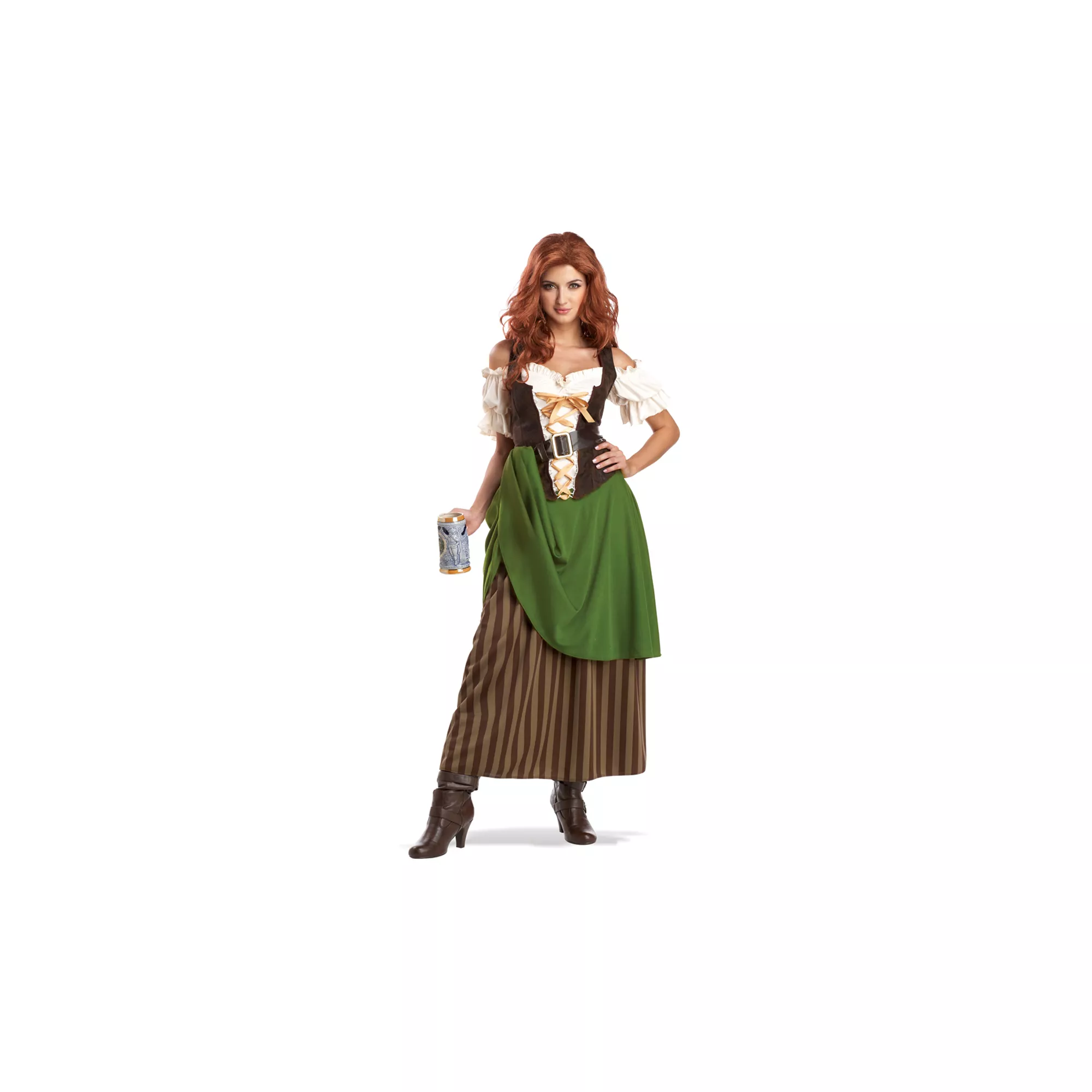 Serve up some goods this Halloween in the Tavern Maiden Women's Costume. You can handle any unruliness this Halloween, or maybe you'll be the ring leader of trouble,in this green dress with long skirt and lace-up detail.