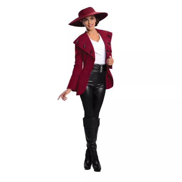 Draw in the great wizard you love when you wear this officially licensed Oz The Great and Powerful Theodora Adult Women's Costume! You'll be adventure ready in this maroon jacket with black button detail on the flapped collar and the matching floppy hat contributes to this whimsical look. Trek all over Oz in these faux leather pants, which feature a high-waist and cool buckled belt detail.