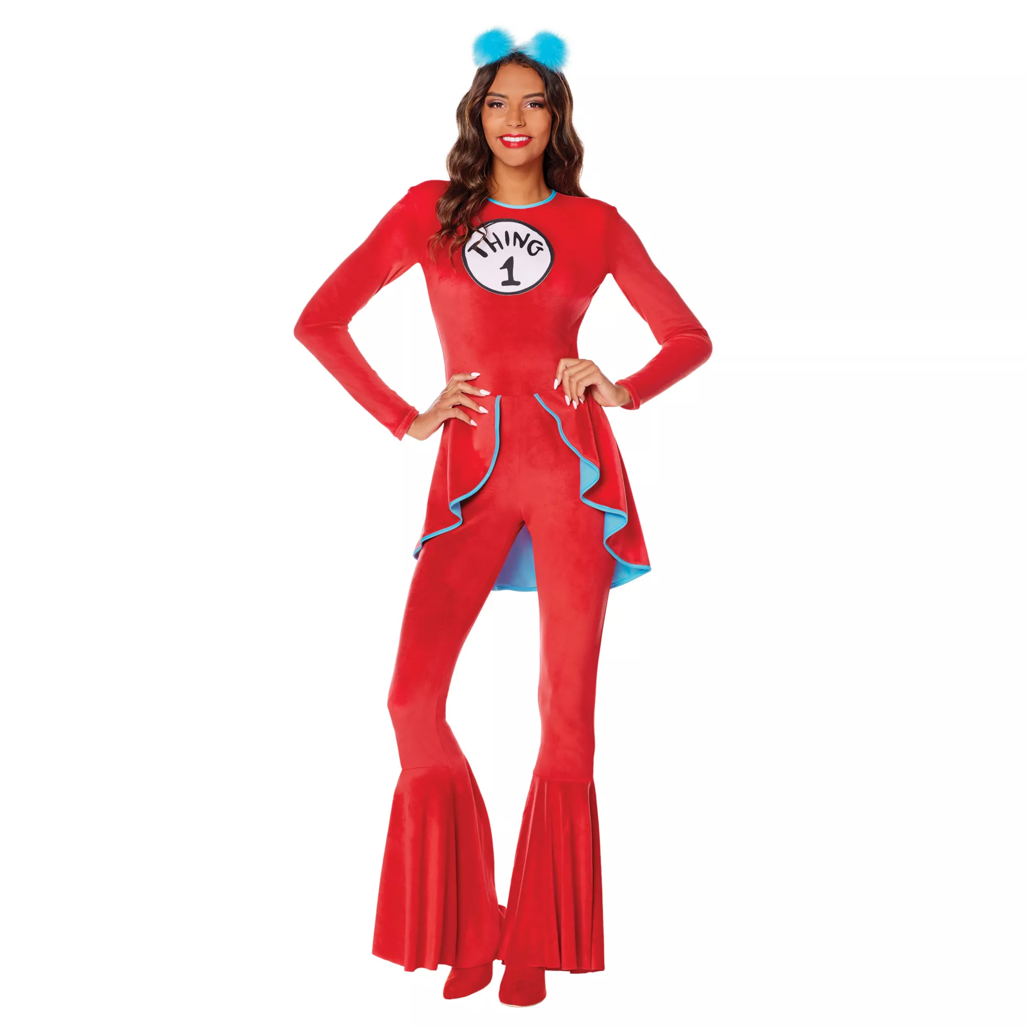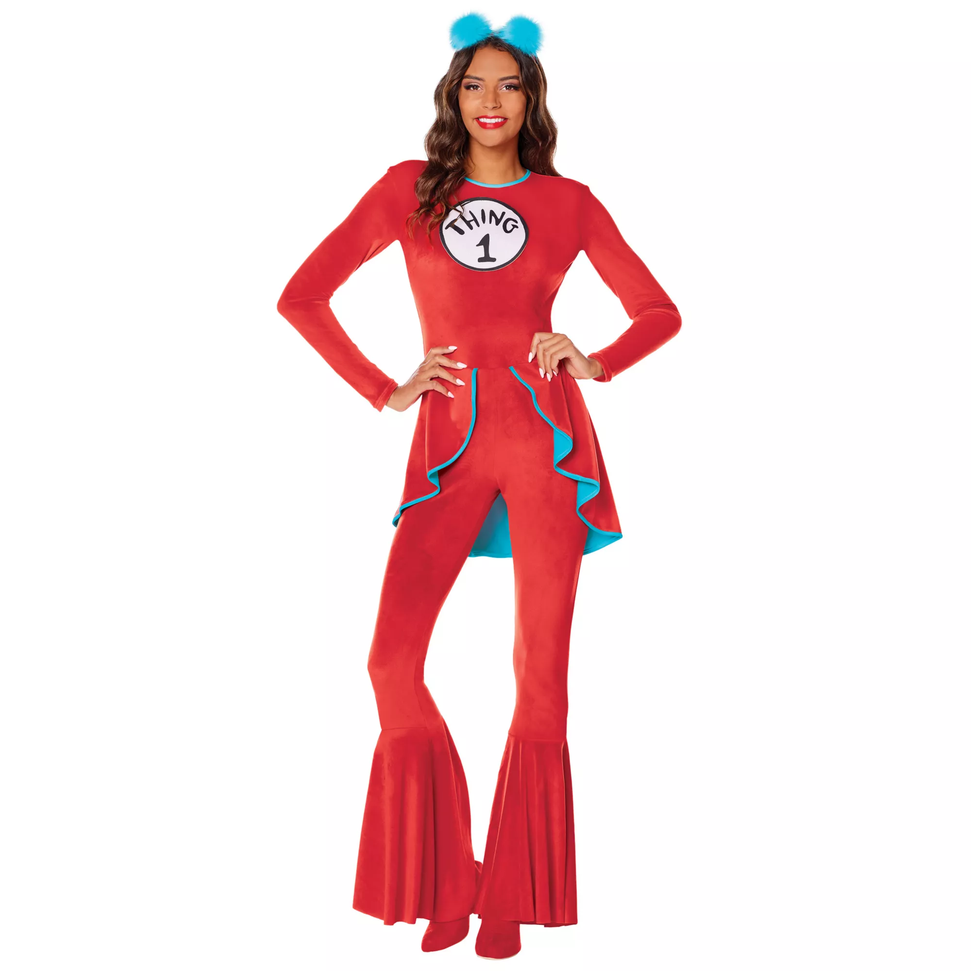 You’re sure to be bouncing off the walls when you suit up in this officially licensed costume! Featuring a red jumpsuit, a matching headband topped with bright blue poms, and patches that read “Thing 1” and “Thing 2,” this look has everything you need to complete your wacky ensemble. Stir up some trouble on Halloween night with this silly fit!