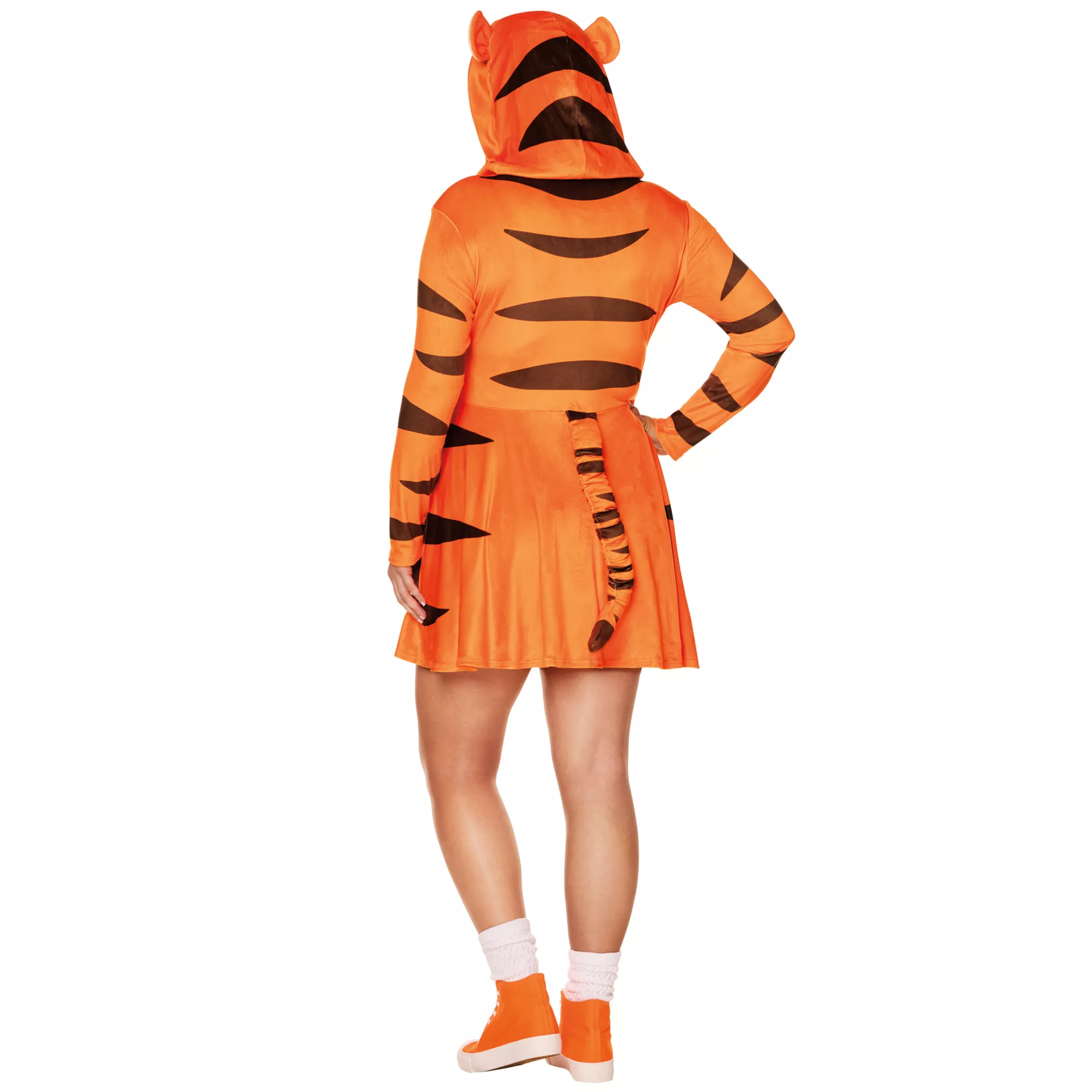 Jump into the Halloween spirit in style when you sport this officially licensed Adult Tigger Dress Costume! This cozy and cute skater dress will have you repping your favorite Winnie the Pooh character with a fun and flirty flare.