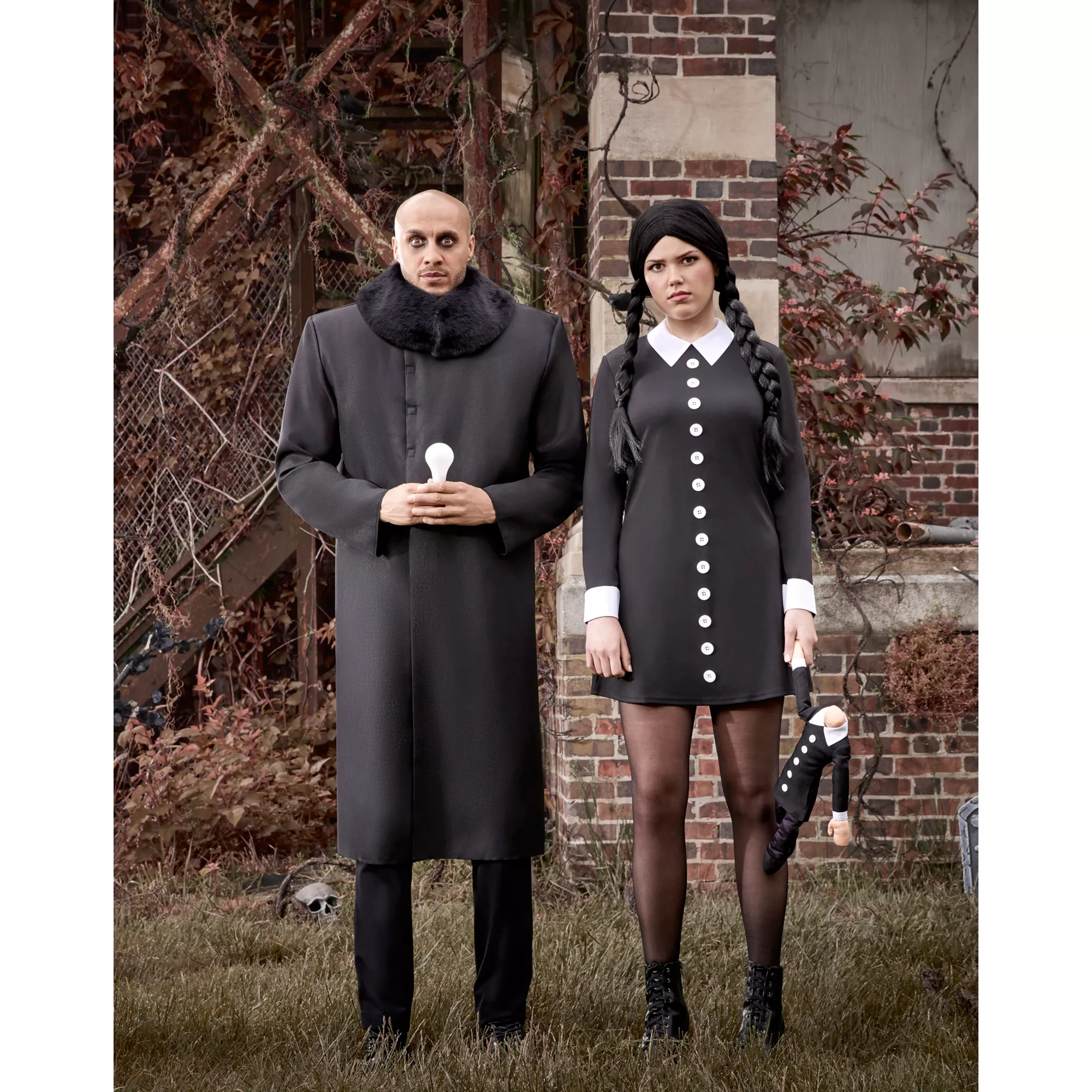 They're creepy and they're kooky, mysterious and spooky, they're all together ooky... The Addams family! Dress up like everyone's favorite Addam in this officially licensed Adult Uncle Fester Costume. This all-black full-length jacket features velcro closure, a faux-fur collar, and a light-up bulb!