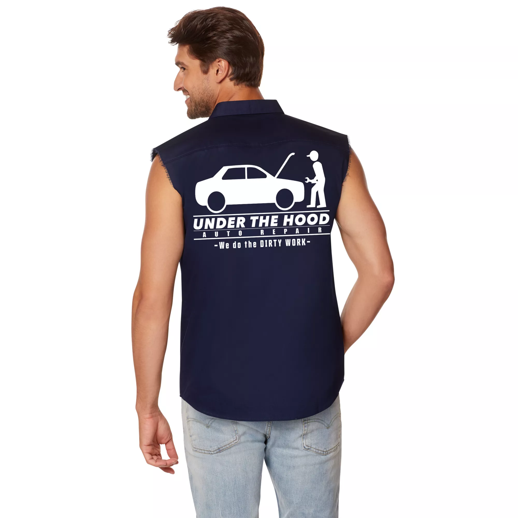 Your next mechanic costume can't be complete without adding this Under the Hood Mechanic Vest to your look. This sleeveless vest features a button-up closure and will let everyone know that you're a professional at doing work under the hood. This vest is the perfect addition to complete any redneck or mechanic costume this Halloween and is great for handling your dirty work.