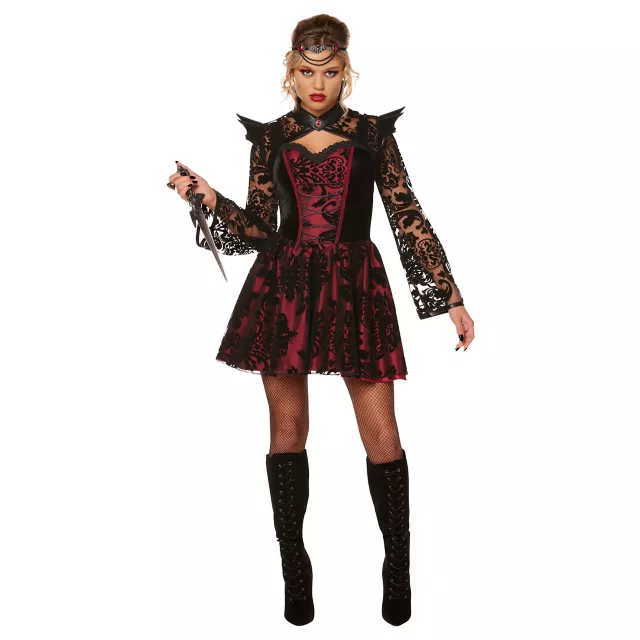 Feeling bloodthirsty this Halloween? Show off your ultimate vampire look by rocking this Vampire Dress Costume and you'll be ready to hunt. This stylish dress features a beautiful lace patterned bolero to throw on over top the beautiful red dress, use the included headpiece to top it off and you'll be looking stunning!