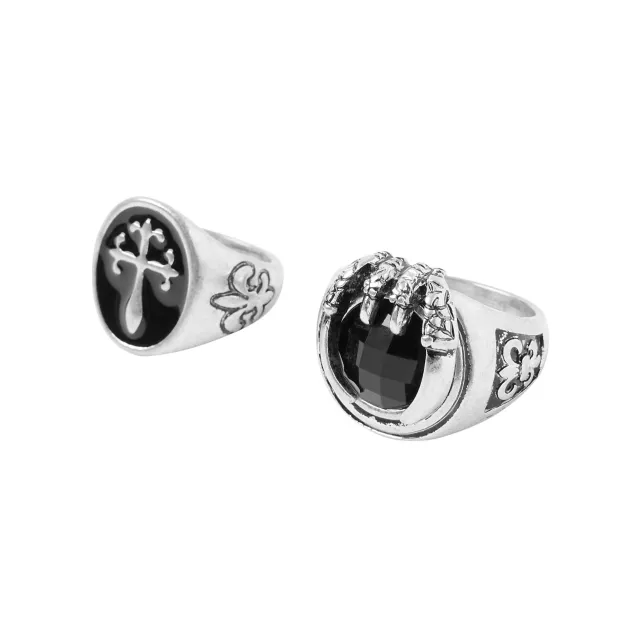 Don't neglect the details when planning your vampire costume! This cross and claw two-piece ring set adds a spine-chilling touch of authenticity to your look. These rings will strike fear into the hearts of all who see them as you lift your goblet of blood to your lips!
