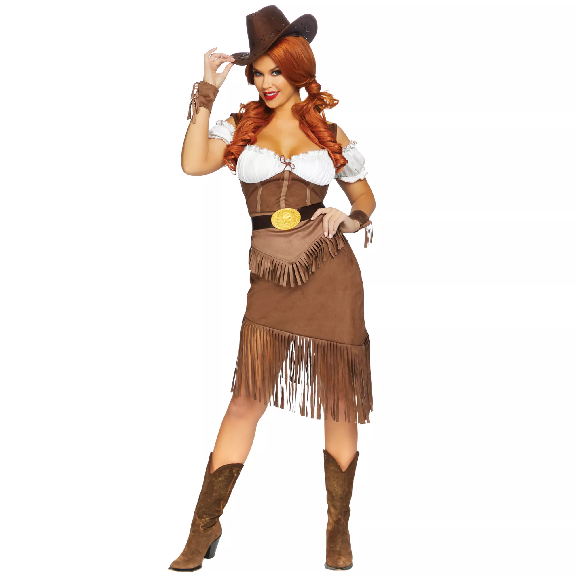 Say howdy to Halloween this year with a Western Woman Costume. This brown and white costume comes complete with a hat that will bring out the cowgirl in you!