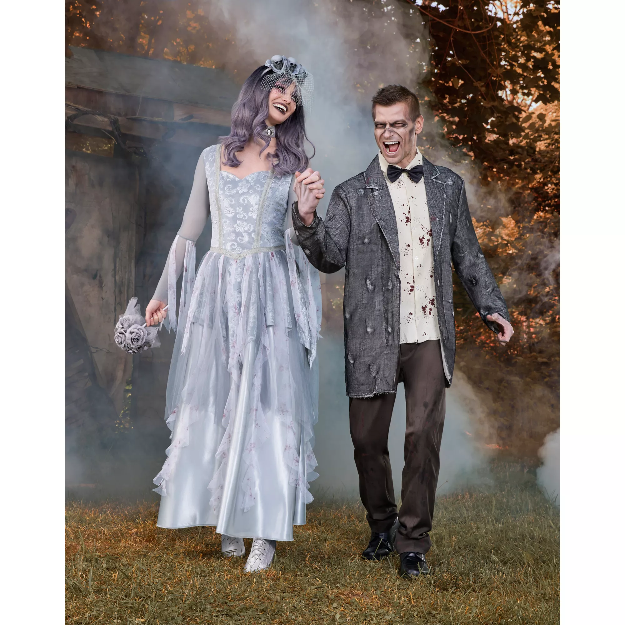 Here comes the bride! Rise from the dead and get ready for your big wedding day when you dress up in this Zombie Bride Costume. With this zombie bride dress on you'll look ready to make your way down the aisle in undead style this Halloween.