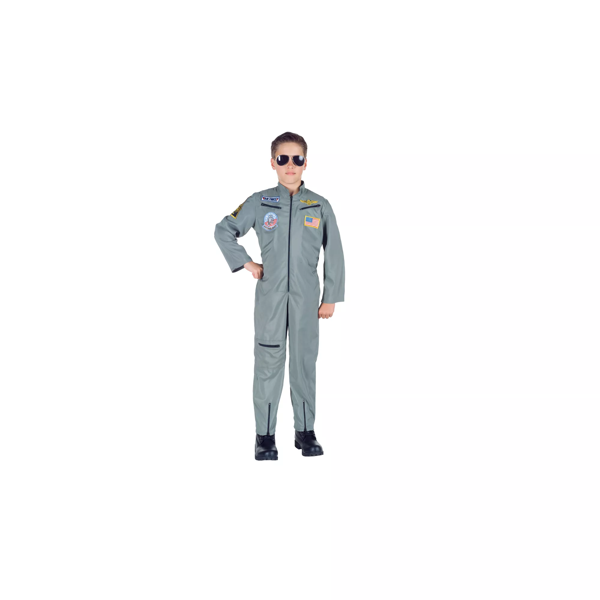Soar through the sky on Halloween when you wear this authentic looking Air Force Boys Costume. The gray jumpsuit features military patches and is sure to send you flying down the trick-or-treat path!