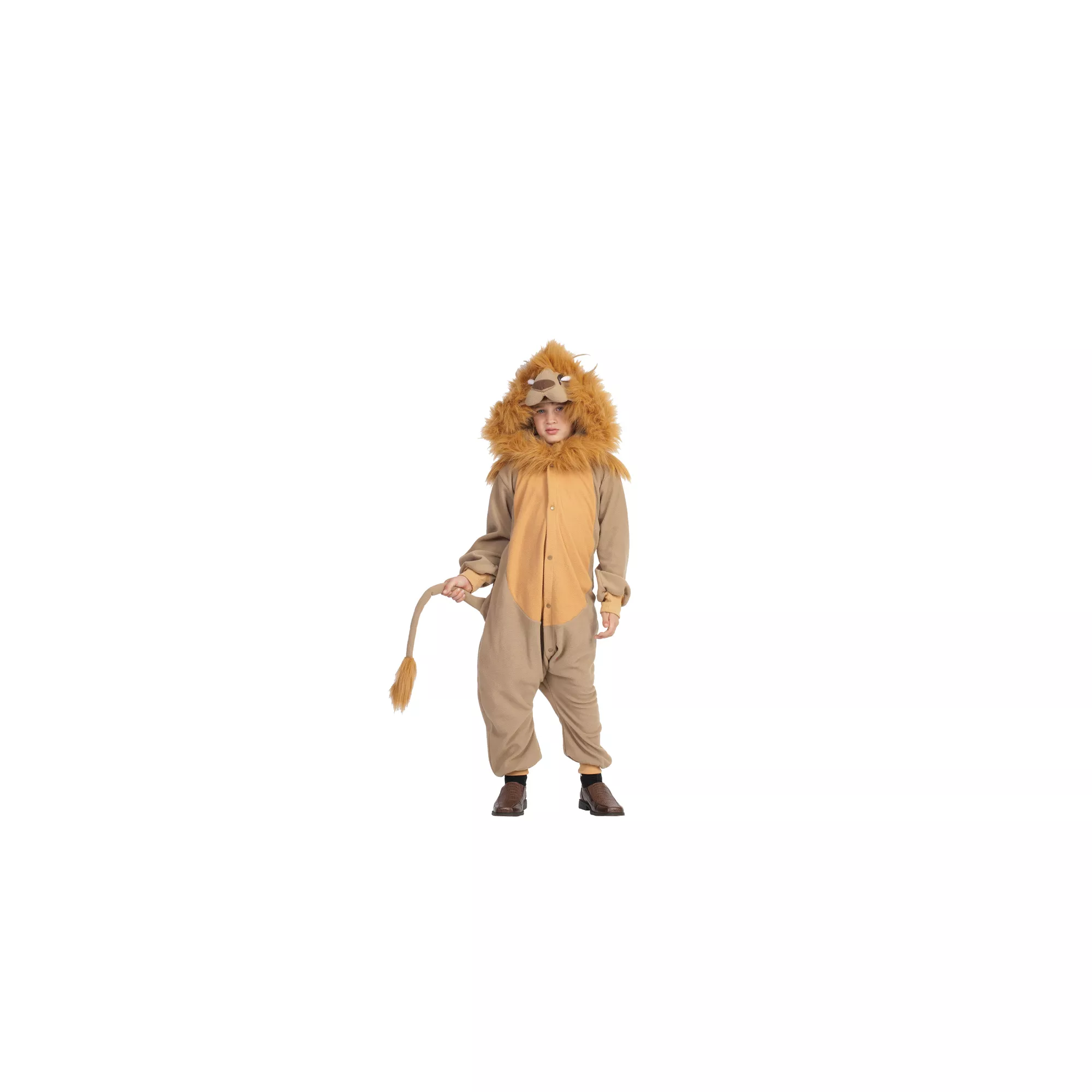 Rule the animal kingdom and the neighborhood when you don this clever and comfortable Anime Lion child costume. The hooded jumpsuit of this king of the jungle costume features an attached tail and is made of Polar Fleece.