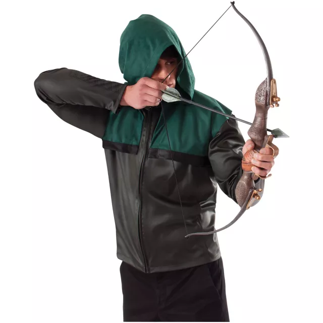 Practice your target shooting with this Archer Bow and Arrow Set. Classic brown vintage bow and silver pointed arrow are a classy addition to a Robin Hood costume.