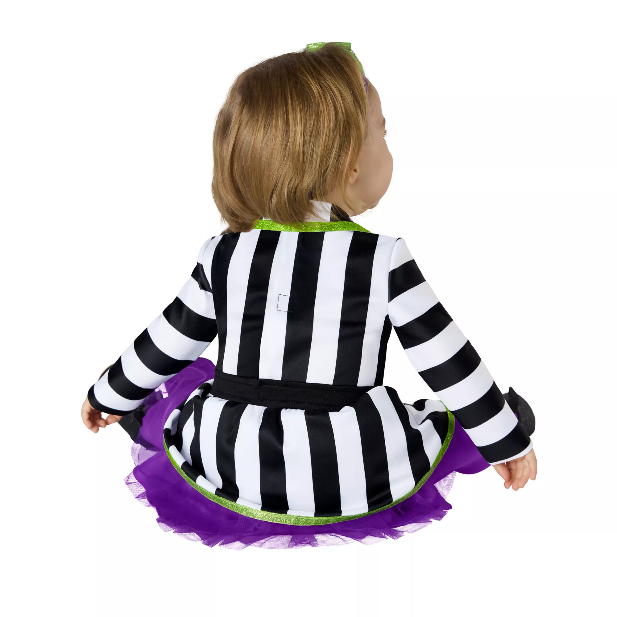 Your little ghoul will be the ghost with the most this Halloween when they dress up in this officially licensed Baby Beetlejuice Dress Costume. This adorable costume includes a dress designed after Beetlejuice's iconic look, a headband, and purple tights!
