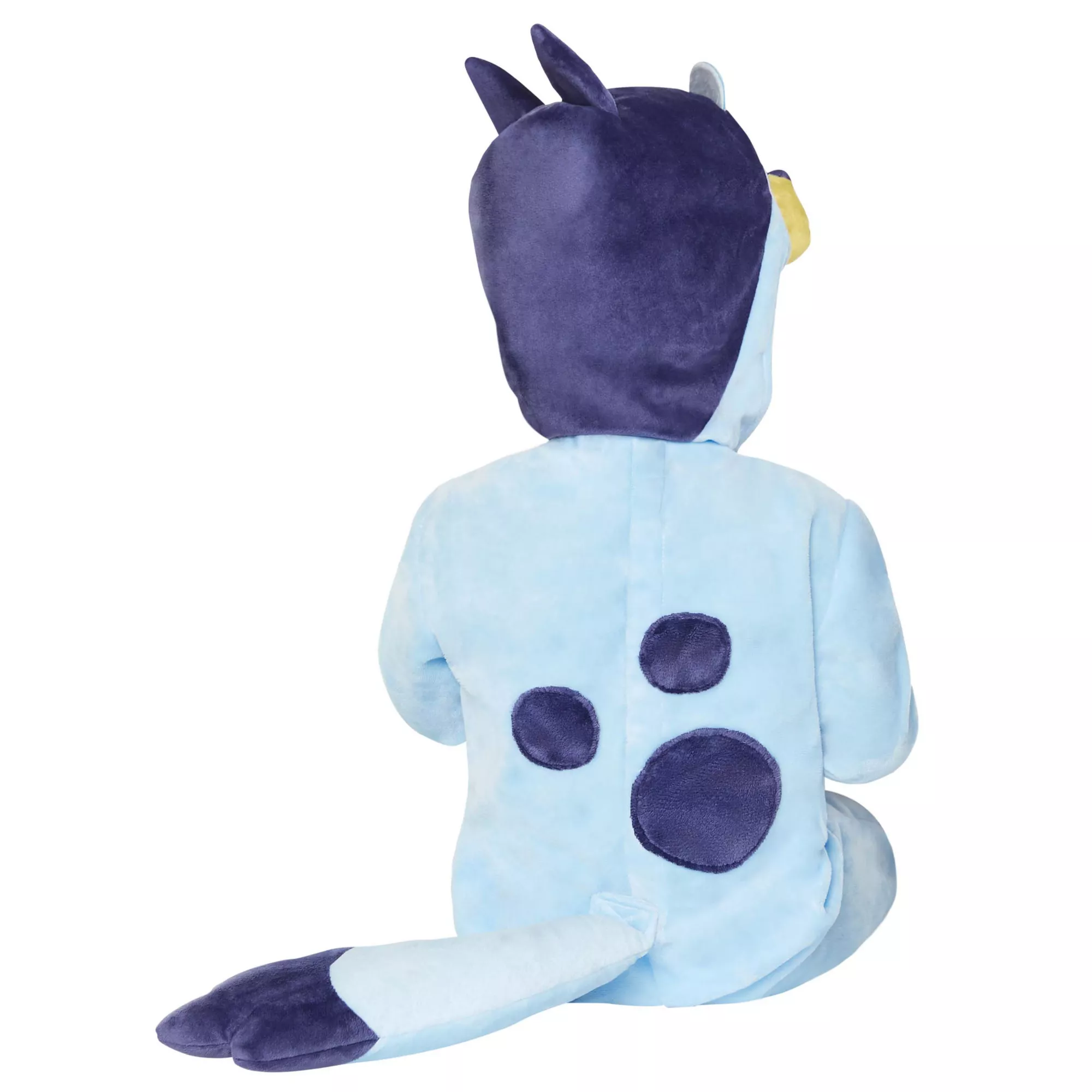 If your baby absolutely loves Bluey, this adorable costume is a perfect choice! This officially licensed costume, featuring a blue jumpsuit, a Bluey headpiece, and an attached tail, will make your baby look just like Bluey. With convenient zipper closure, they'll be ready for their night of trick-or-treating in no time!
