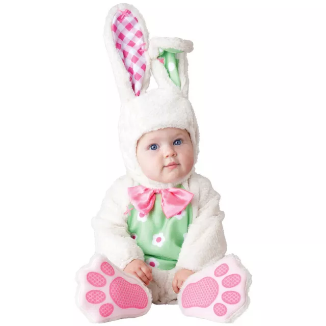 Dress your hunny like a bunny in this Bunny Baby Costume! Mismatched patterned ears are attached to fuzzy headpiece while matching jumpsuit will leave your sweetheart cute and comfy on Halloween.