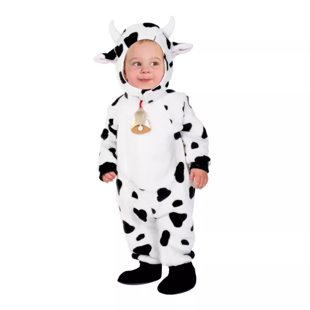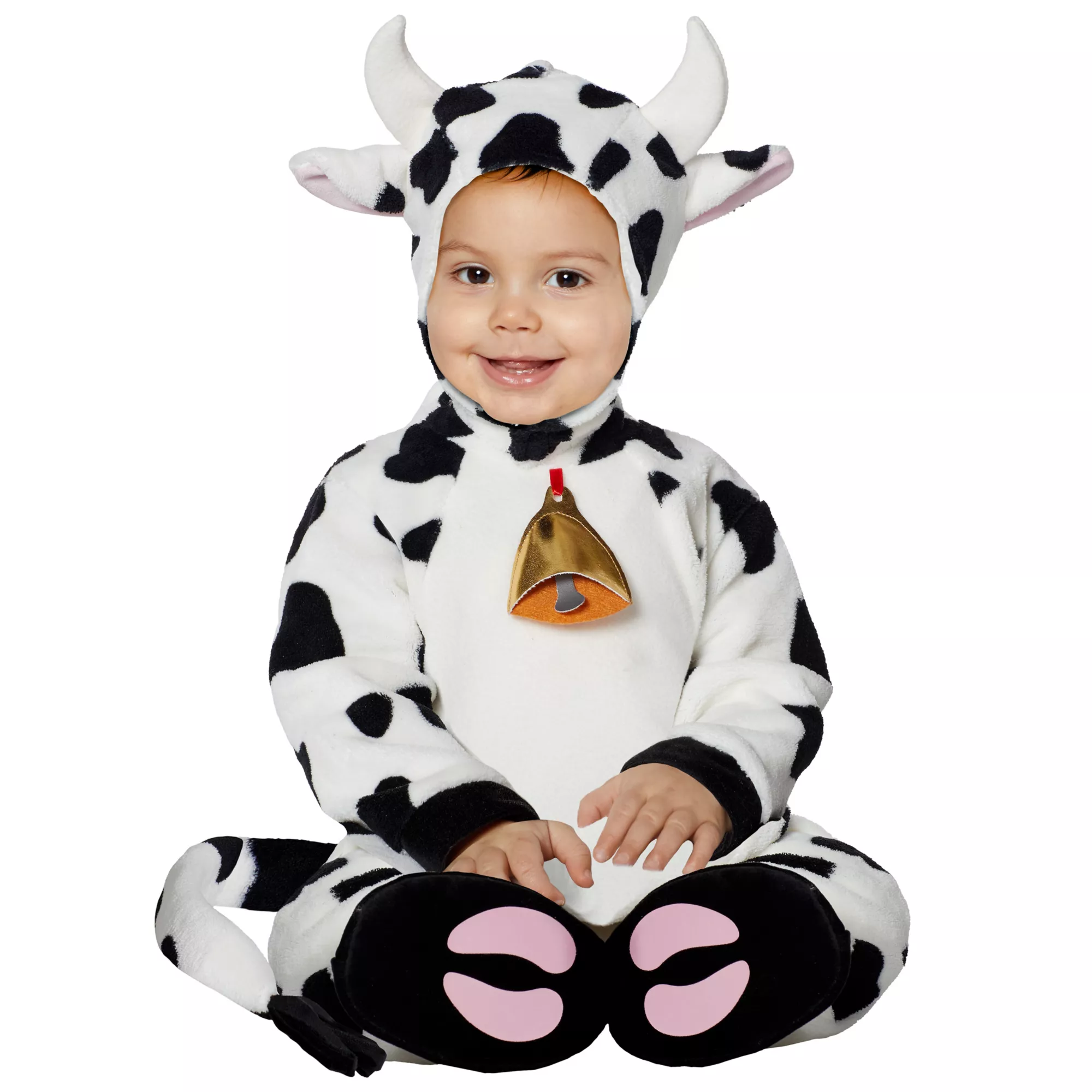 Moo-ve over - cattle crossing. Dress your little one in this charming black and white cow costume complete with cow bell and milk it - they'll all want pictures and you'll get all the treats! The cozy costume is comfortable and easy to wear; features a Velcro closure.