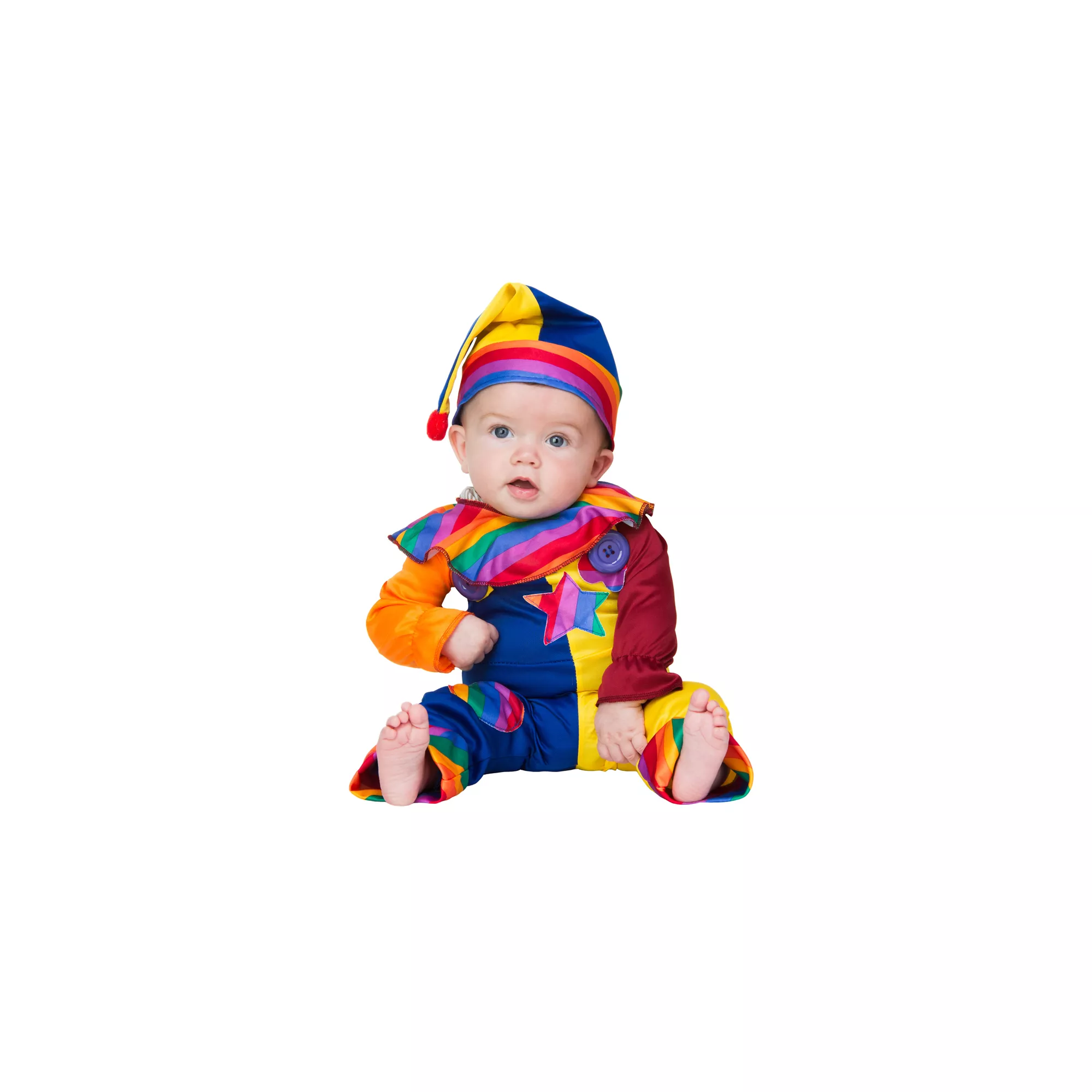 This little circus star is running the show this Halloween in the Cutie Clown Infant Costume. Let your little one's personality shine in this colorful shirt and pant set with rainbow accents and matching hat.