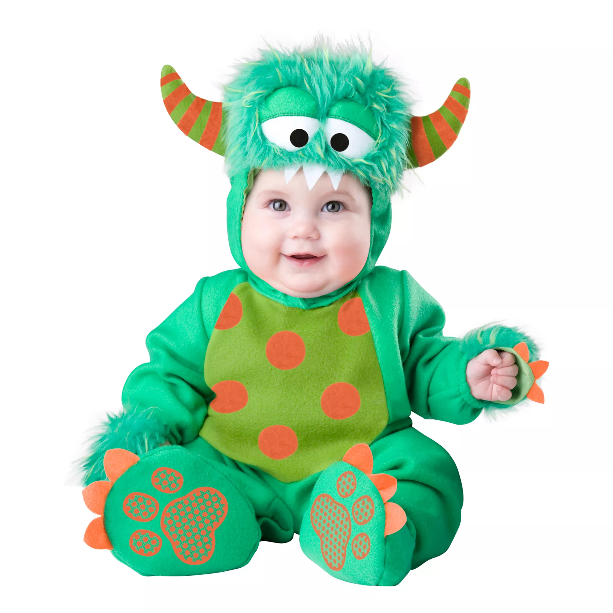 Your child will be ready to scare up some trouble in this adorable monster costume! The playful striped horns and fuzzy headpiece are sure to make quite an impression. So let your baby ROAR and unleash their inner monster!