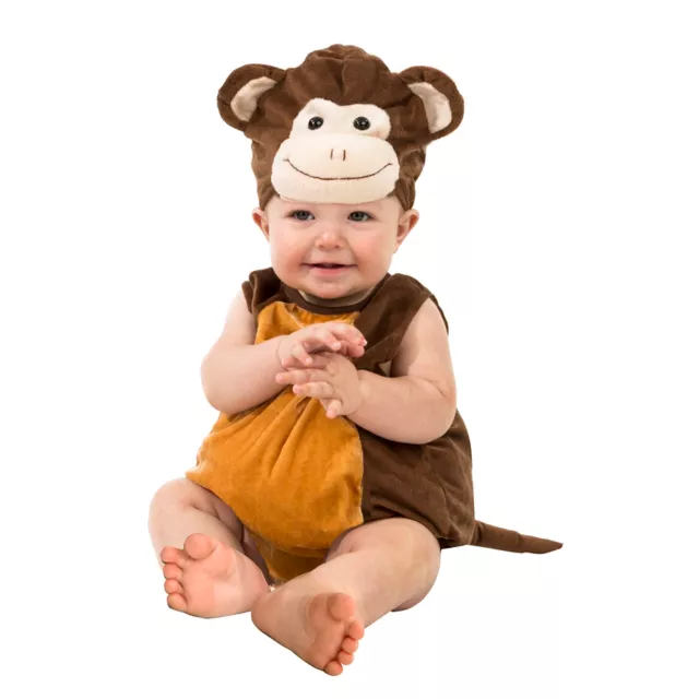Quit monkeying around and put your little one in this adorable Lil Monkey costume! The plush monkey costume includes a fluffy brown jumpsuit with a dark tan tummy and tail, monkey face hat with a smile and ears, and brown leggings (not pictured) in case the air is a bit chilly. You won't be able to stop taking pictures of your little monkey in this costume on Halloween night!