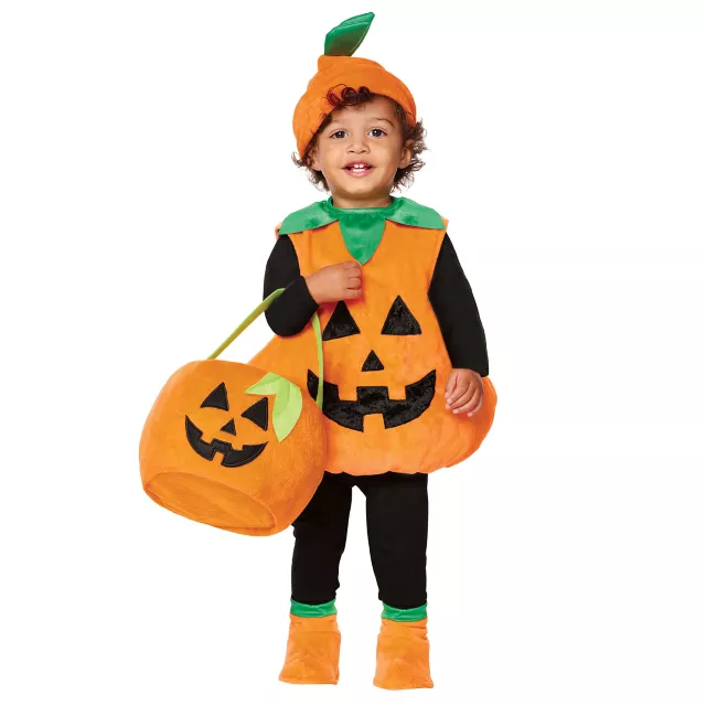 Turn your child into the cutest pumpkin in the pumpkin patch this Halloween when you dress them up in this Baby Lil Pumpkin Costume. Featuring a pumpkin jumpsuit, cute little booties, and a matching hat to finish the look, with this awesome costume on your child will be ready to take the nickname pumpkin to a whole new level.