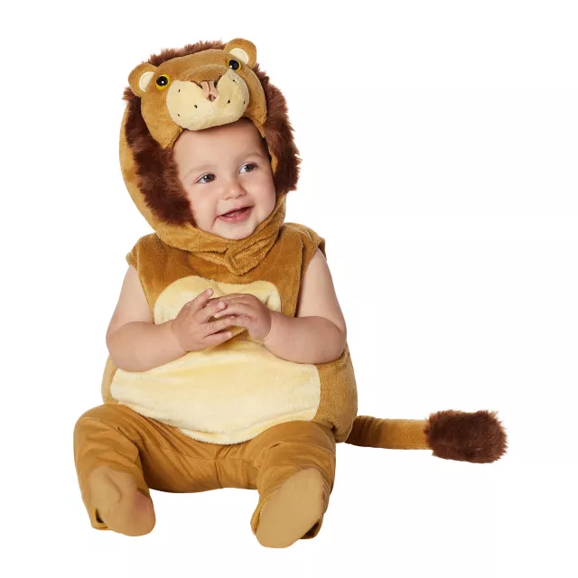 Transform your little one into the biggest threat in the jungle this Halloween with this cute baby lion costume. This costume includes a lion hood, jumpsuit, and leggings with velcro closure for easy dressing and removal. Your little lion cub is going to love feasting on all their candy after showing up in this adorable costume.