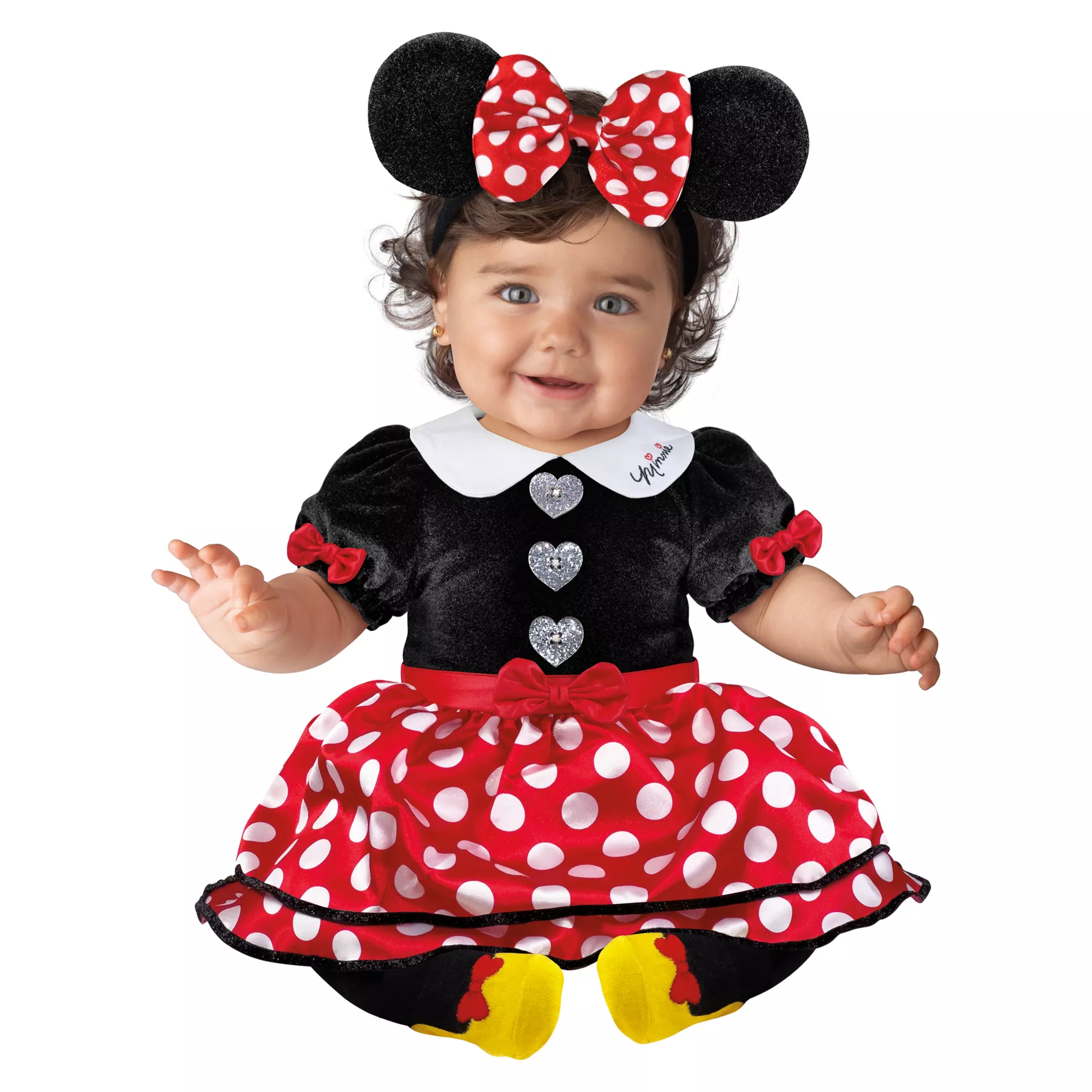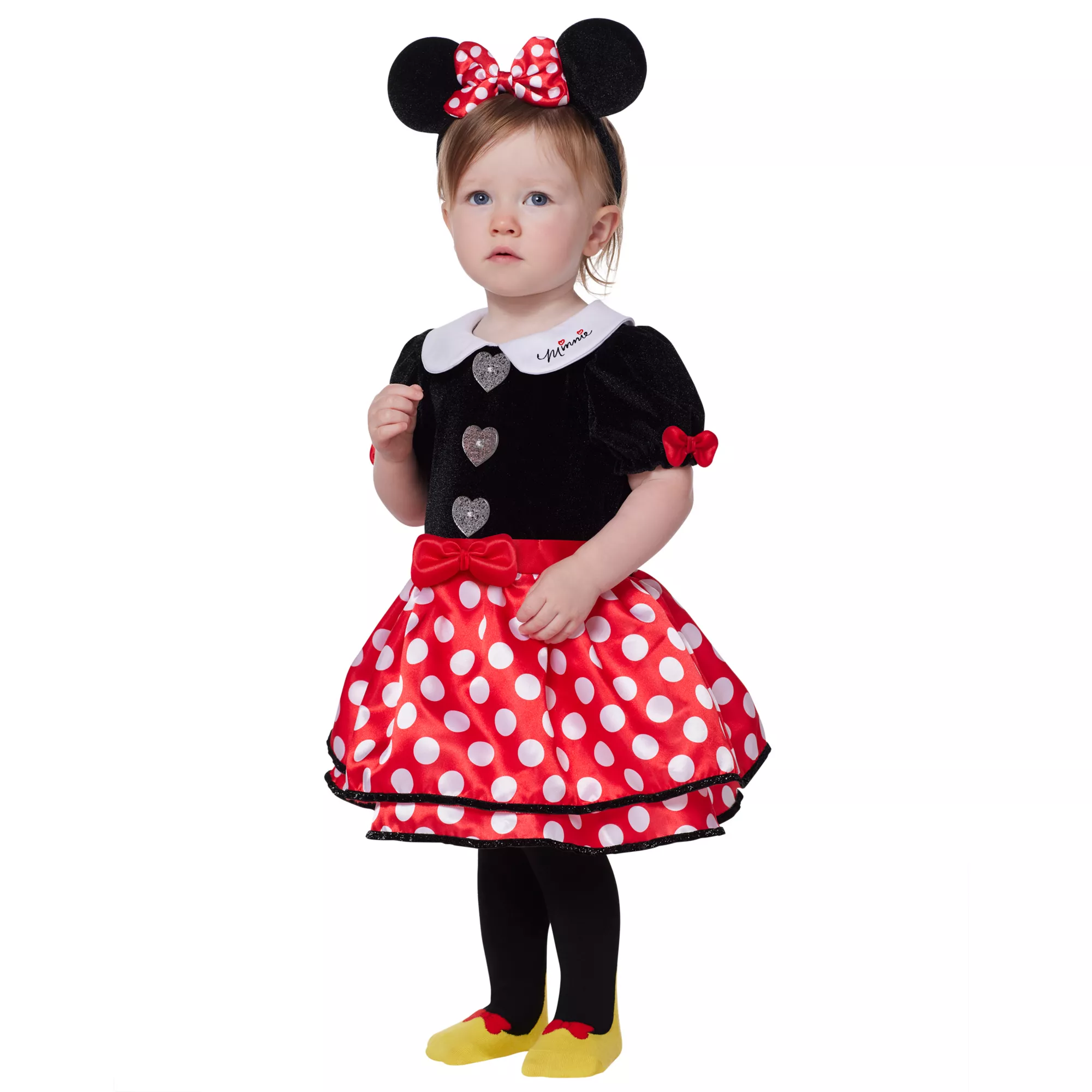 Your little one will have the cutest costume on the block when you get them this officially licensed Baby Minnie Mouse Dress Costume. This costume includes a red dress with white polka dots, a headband that features Minnie's signature ears, and a pair of tights, giving your child a get-up that looks great and feels comfortable!