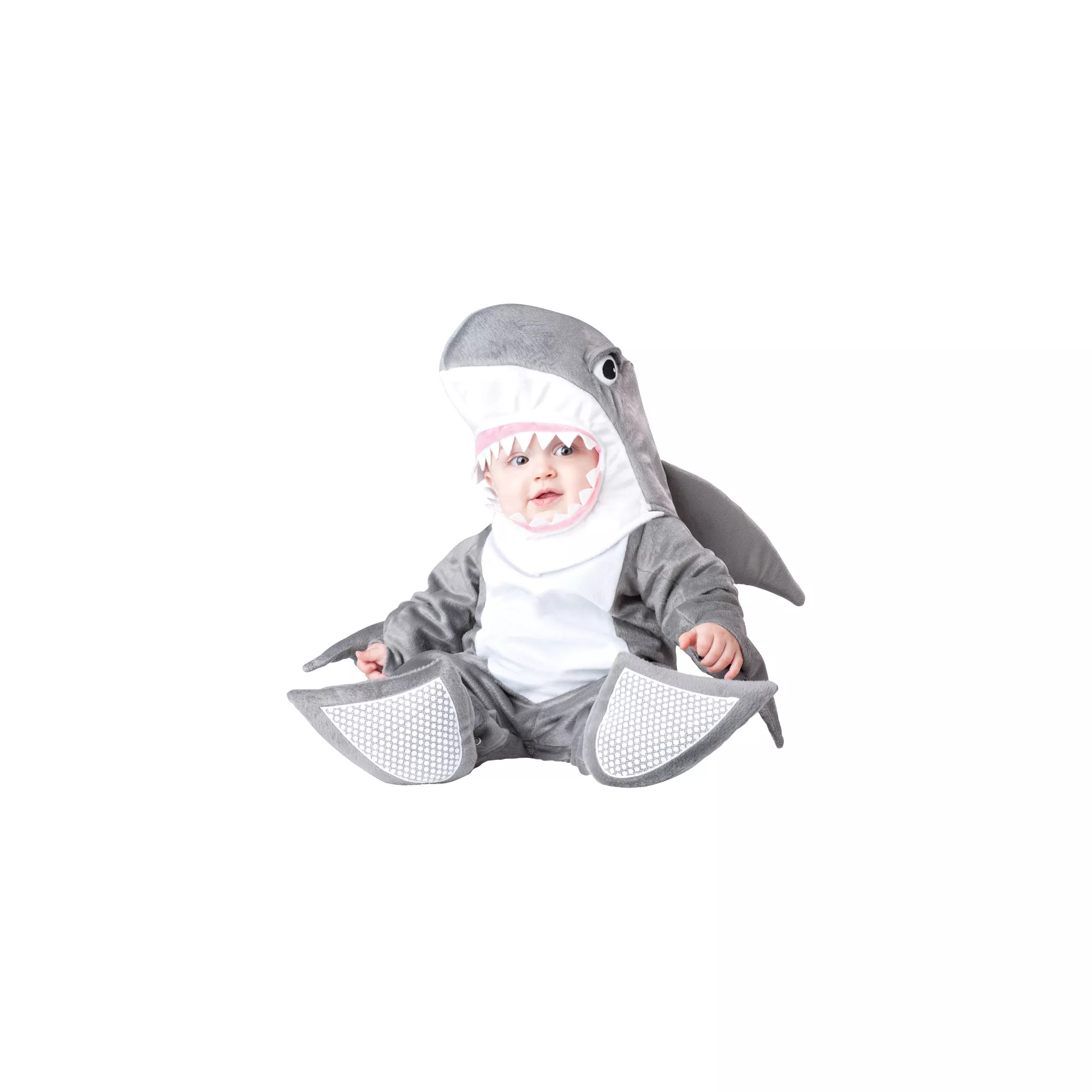 Cut through the clutter of Halloween costumes and make waves when you dress your little one in this Silly Shark baby costume. The zippered jumpsuit has leg snaps for easy diaper changes plus a hood with teeth and slip-on booties with skid resistant bottoms. Make a splash on Halloween and be sure to take pictures.