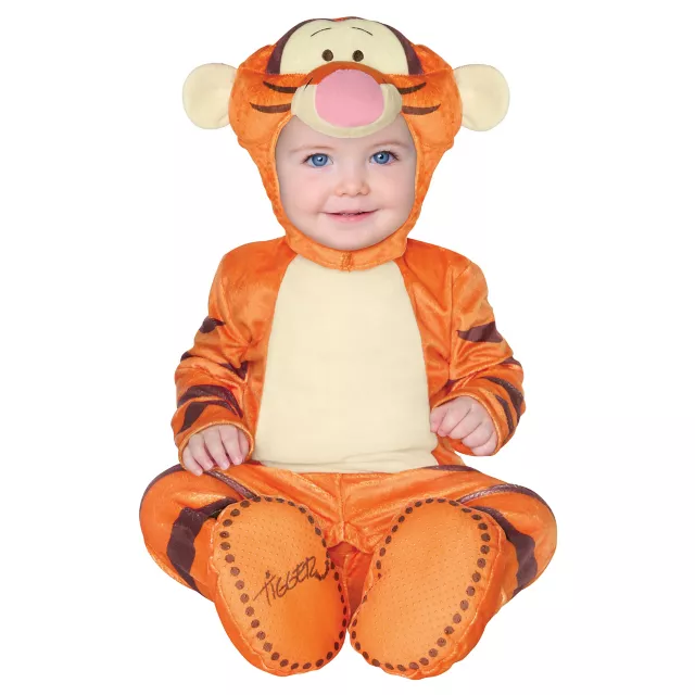 Friends lift each other up! Your bouncy little one will look absolutely adorable in this Tigger Costume. This one-piece jumpsuit features attached booties and included Tigger hood!