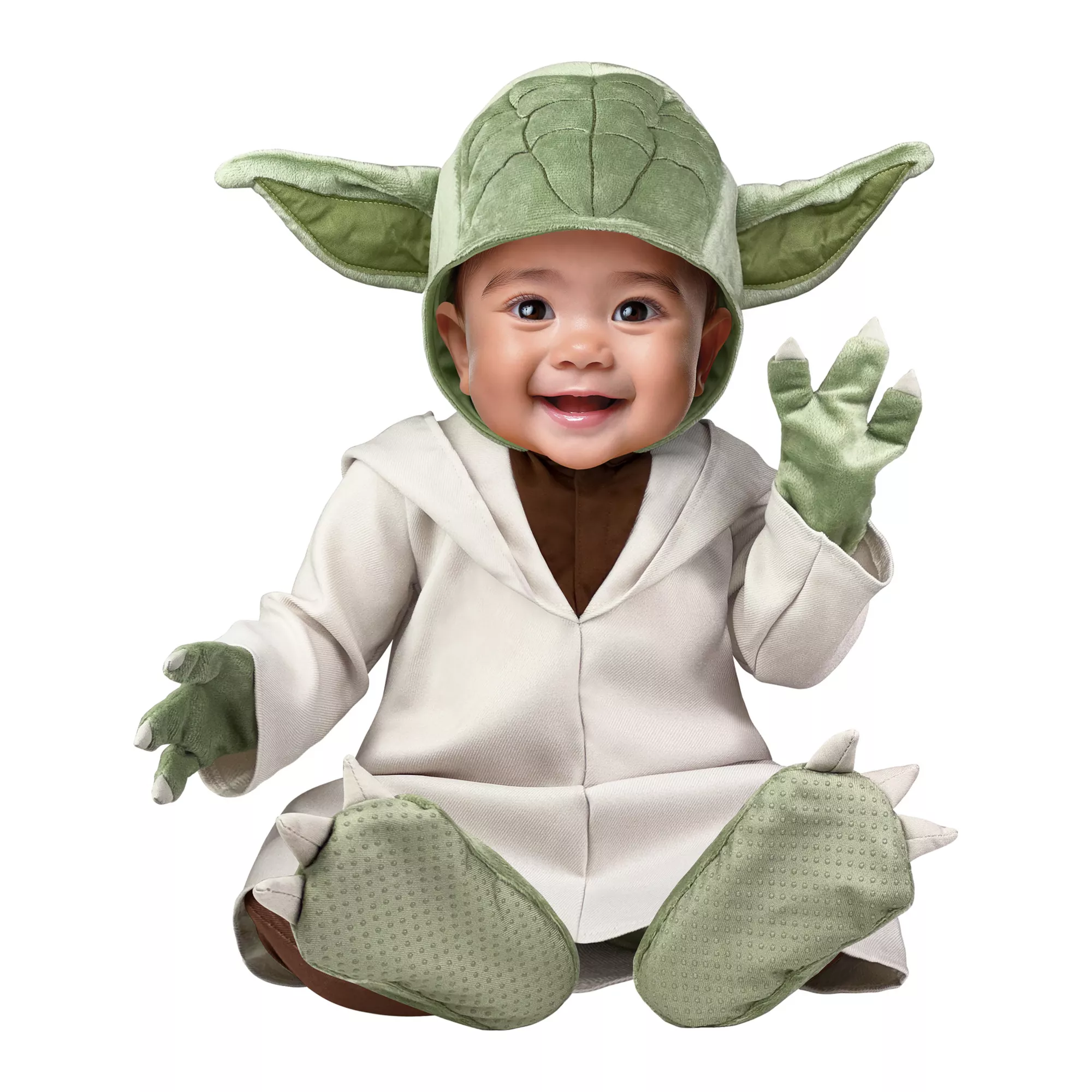 The perfect costume, this is. Have your little one look like one of the best Jedi who has ever lived when they sport this officially licensed Baby Yoda Costume! This adorable hooded robe, boot covers, and gloves will have them mastering their Halloween look in no time.