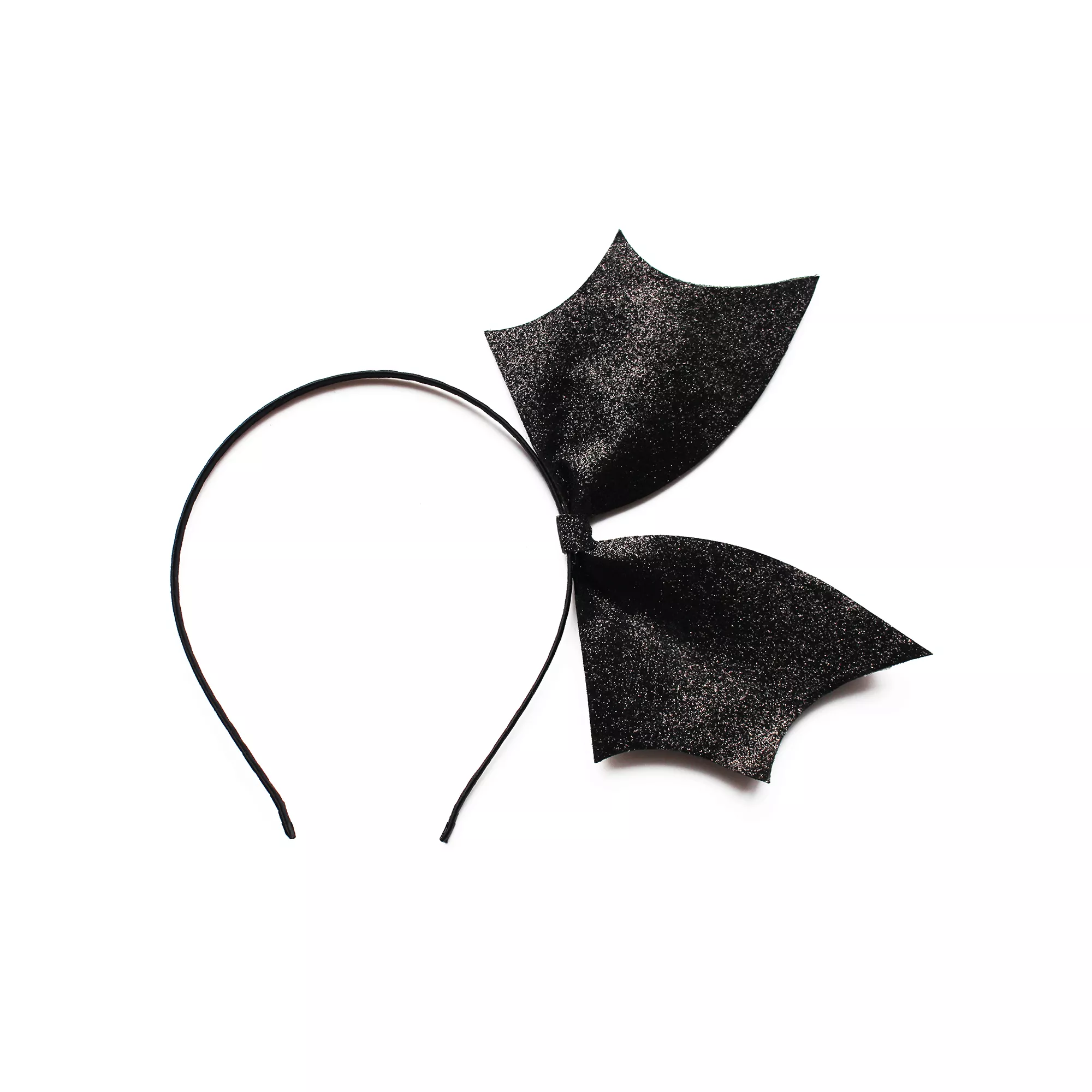 The Bat Bow Headband is the perfect accessory for your child's Halloween party or parade. This headband features a large and fluttery bow shaped like bat wings.